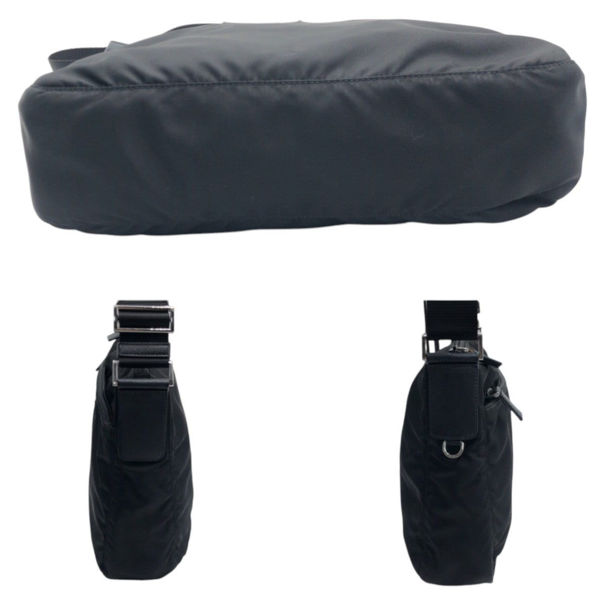 PRADA Shoulder Bag Nylon Black SilverMetal Shoulder Bag Test Triangle With logo mens Used Authentic