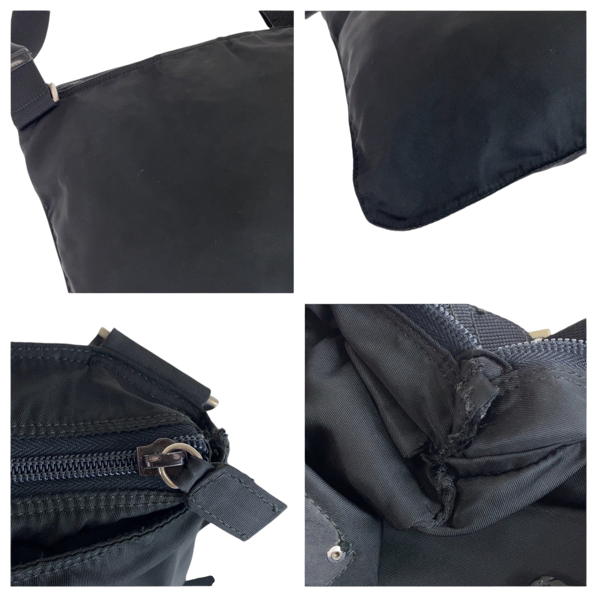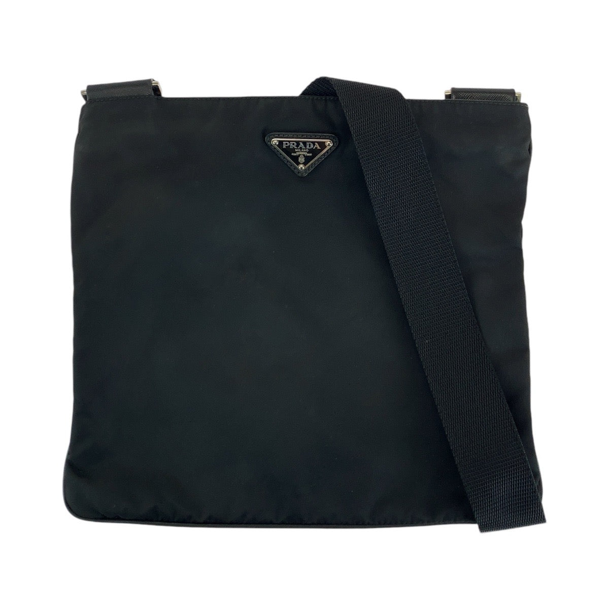 PRADA Shoulder Bag Nylon Black SilverMetal Shoulder Bag pochette Test Triangle With logo mens Used Authentic