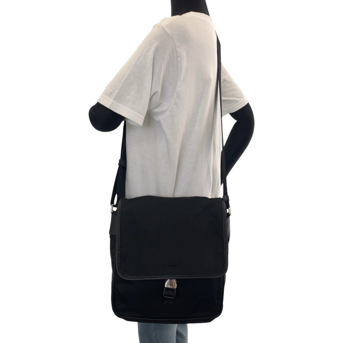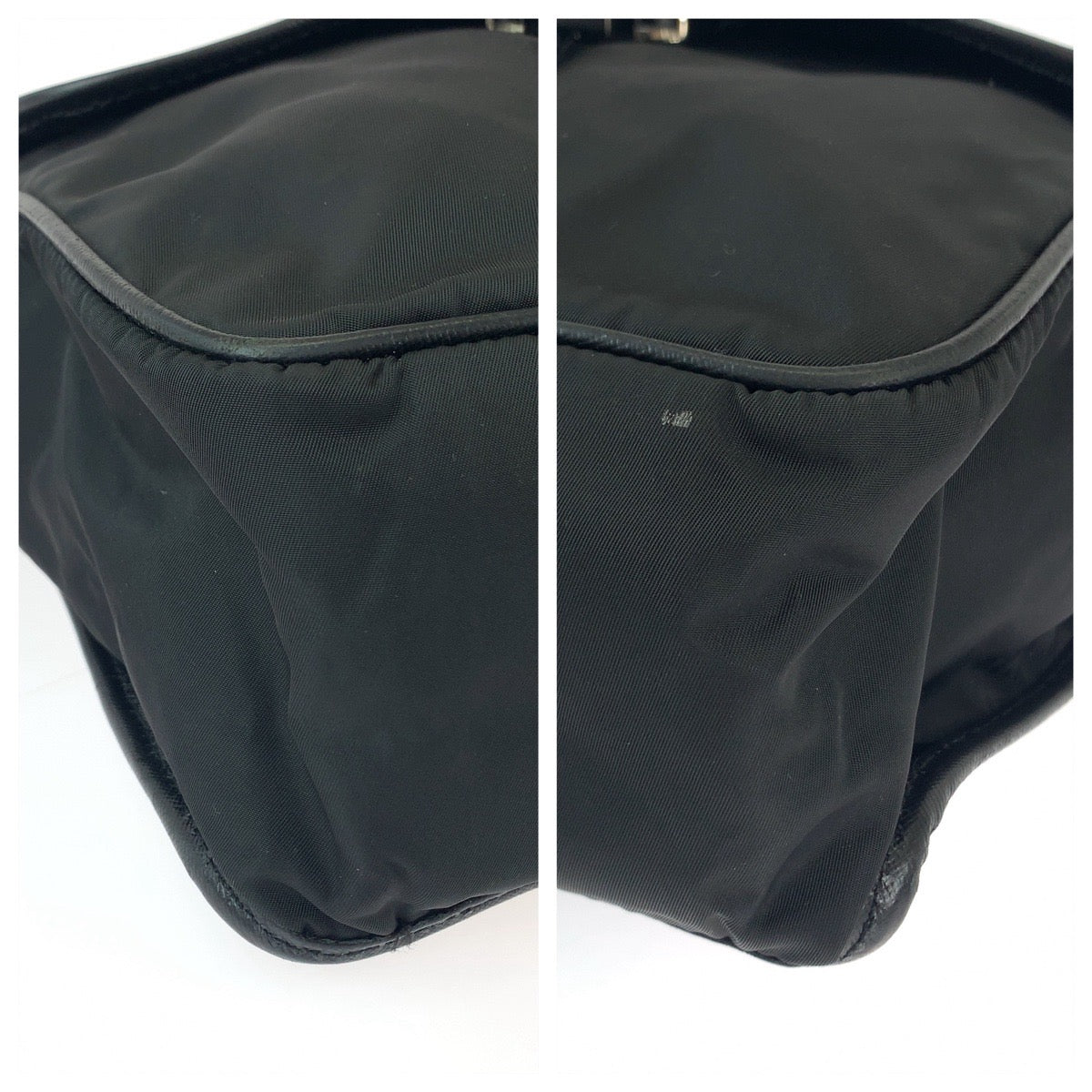PRADA Shoulder Bag Nylon Black SilverMetal Shoulder Bag pochette Test Triangle With logo mens Used Authentic