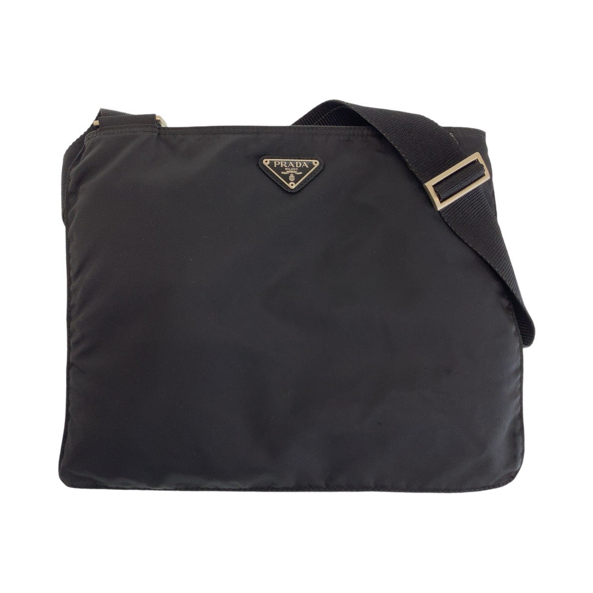 PRADA Shoulder Bag Nylon Black SilverMetal Crossbody Shoulder Bag Messenger Bag Test Triangle With logo Women Used Authentic