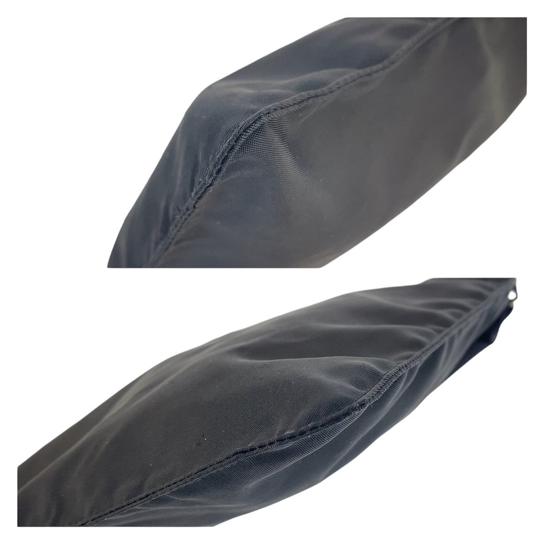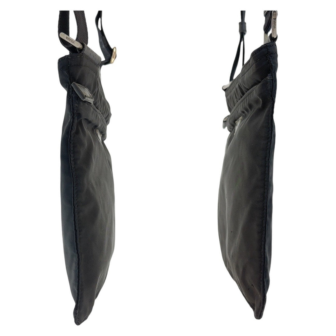 PRADA Shoulder Bag Nylon Black SilverMetal Shoulder Bag Test Triangle With logo Women Used Authentic