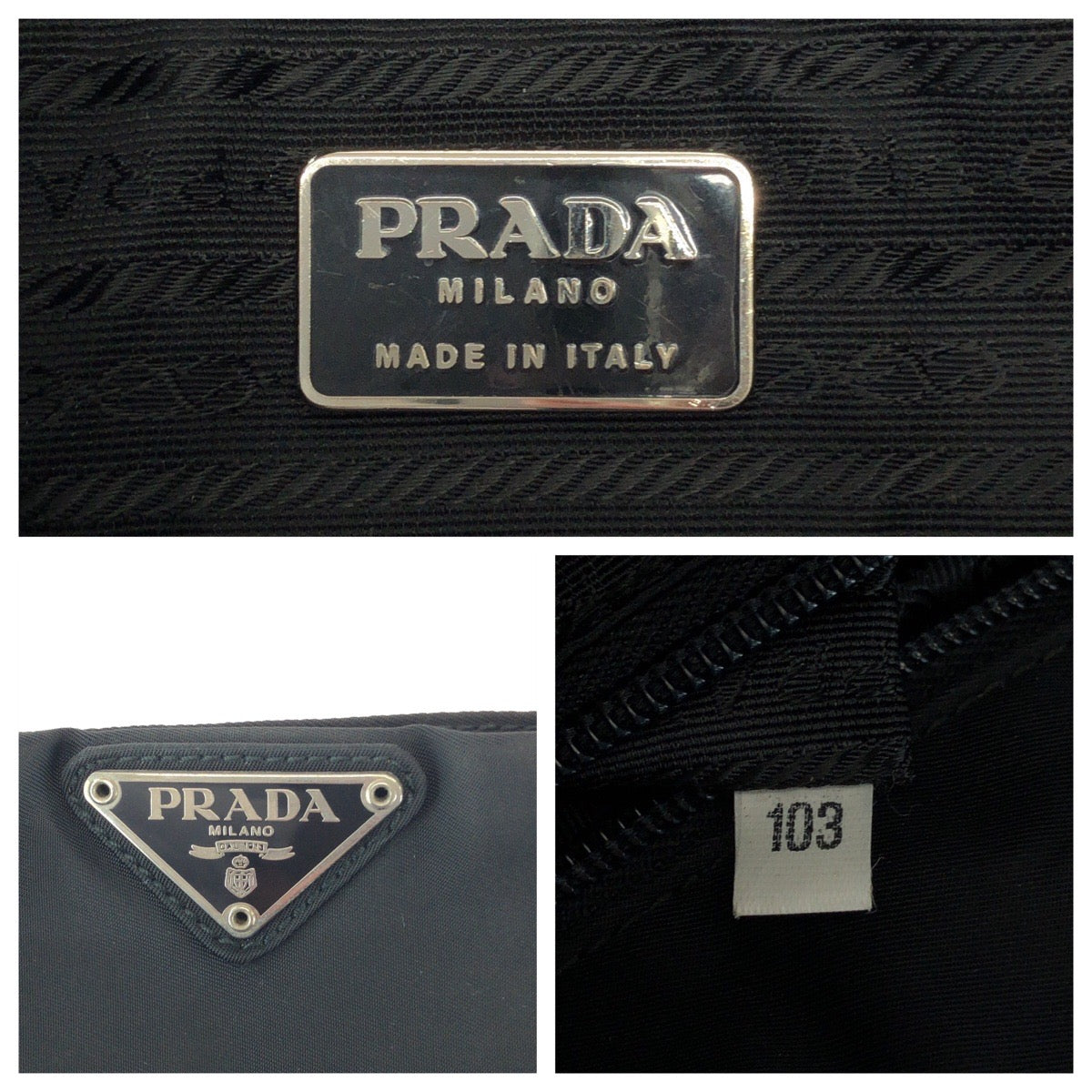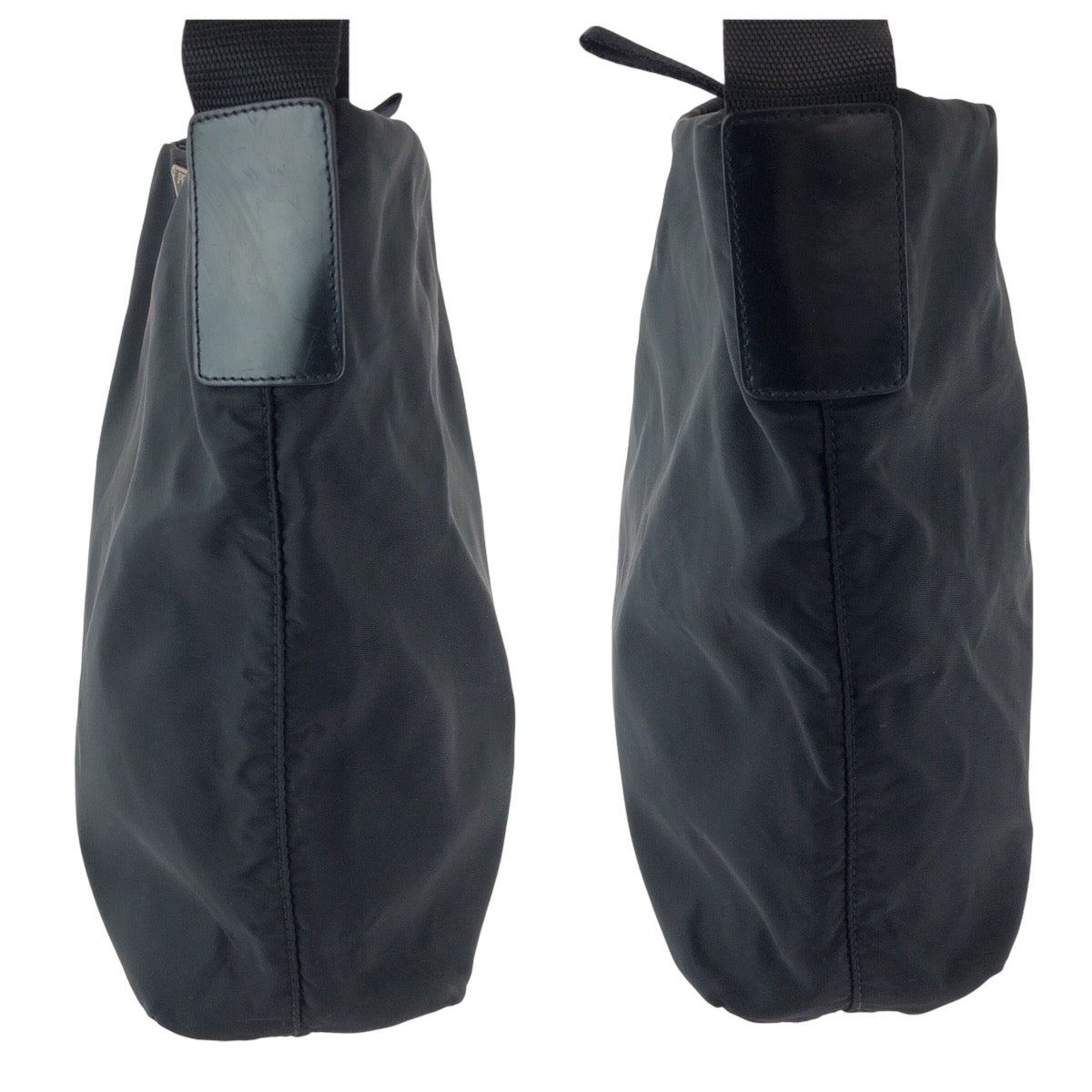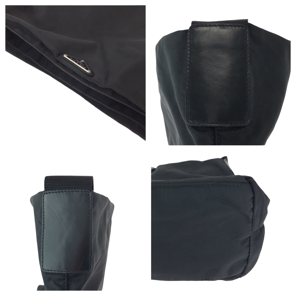 PRADA Shoulder Bag Nylon Black SilverMetal Shoulder Bag pochette Test Triangle With logo Women Used Authentic