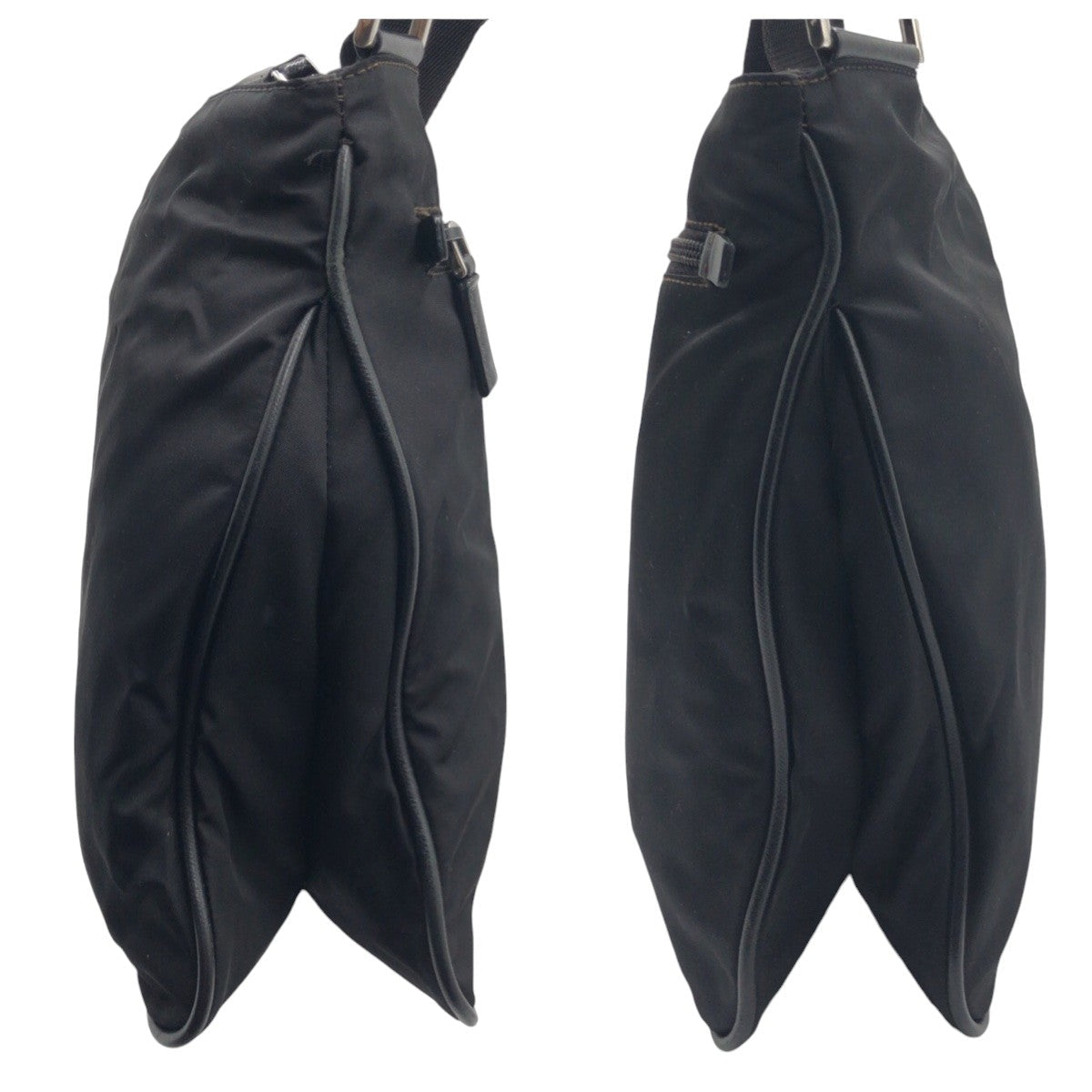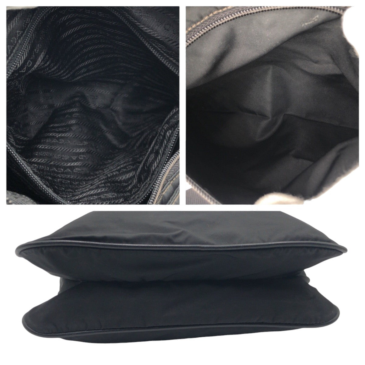 PRADA Shoulder Bag Nylon Black SilverMetal Crossbody Shoulder Bag Pochette Test Triangular logo mens Used Authentic