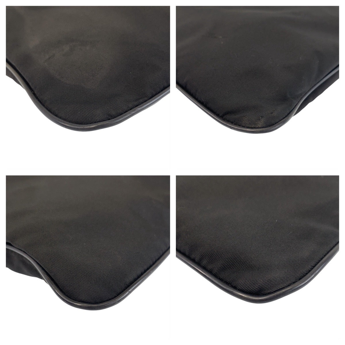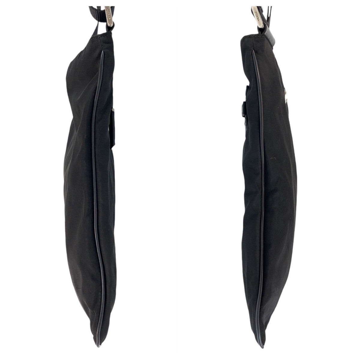 PRADA Shoulder Bag Nylon Black SilverMetal Crossbody Shoulder Bag Messenger Bag Testo Saffiano leather Triangle With logo mens Used Authentic