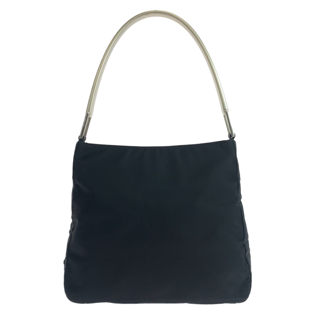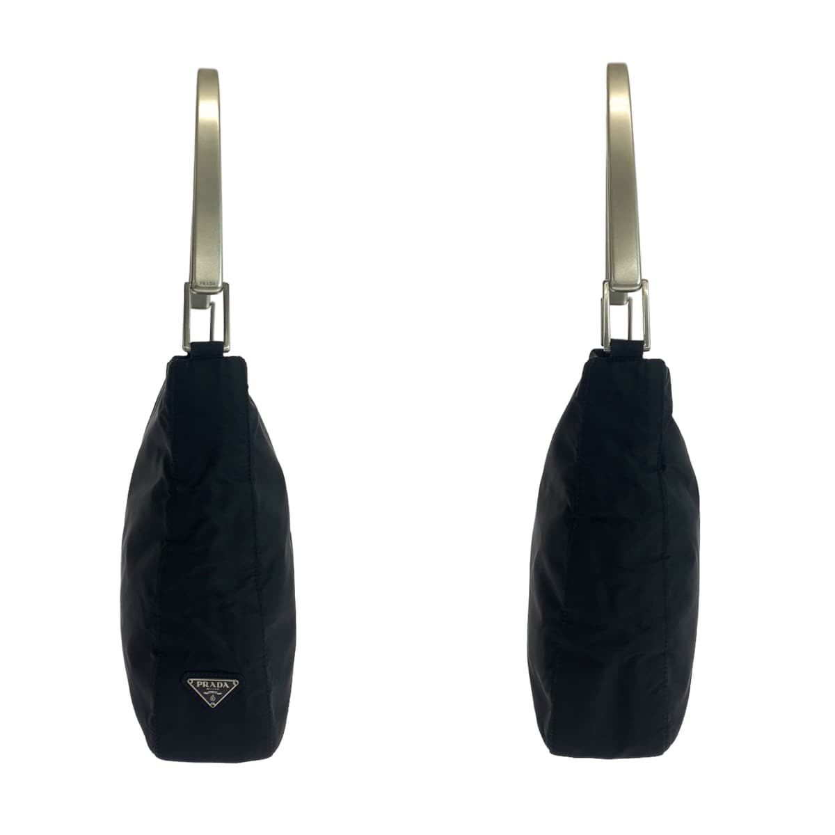 PRADA Shoulder Bag Nylon black Hobo Shoulder Bag Test Triangle logo plastic handle Women Used Authentic