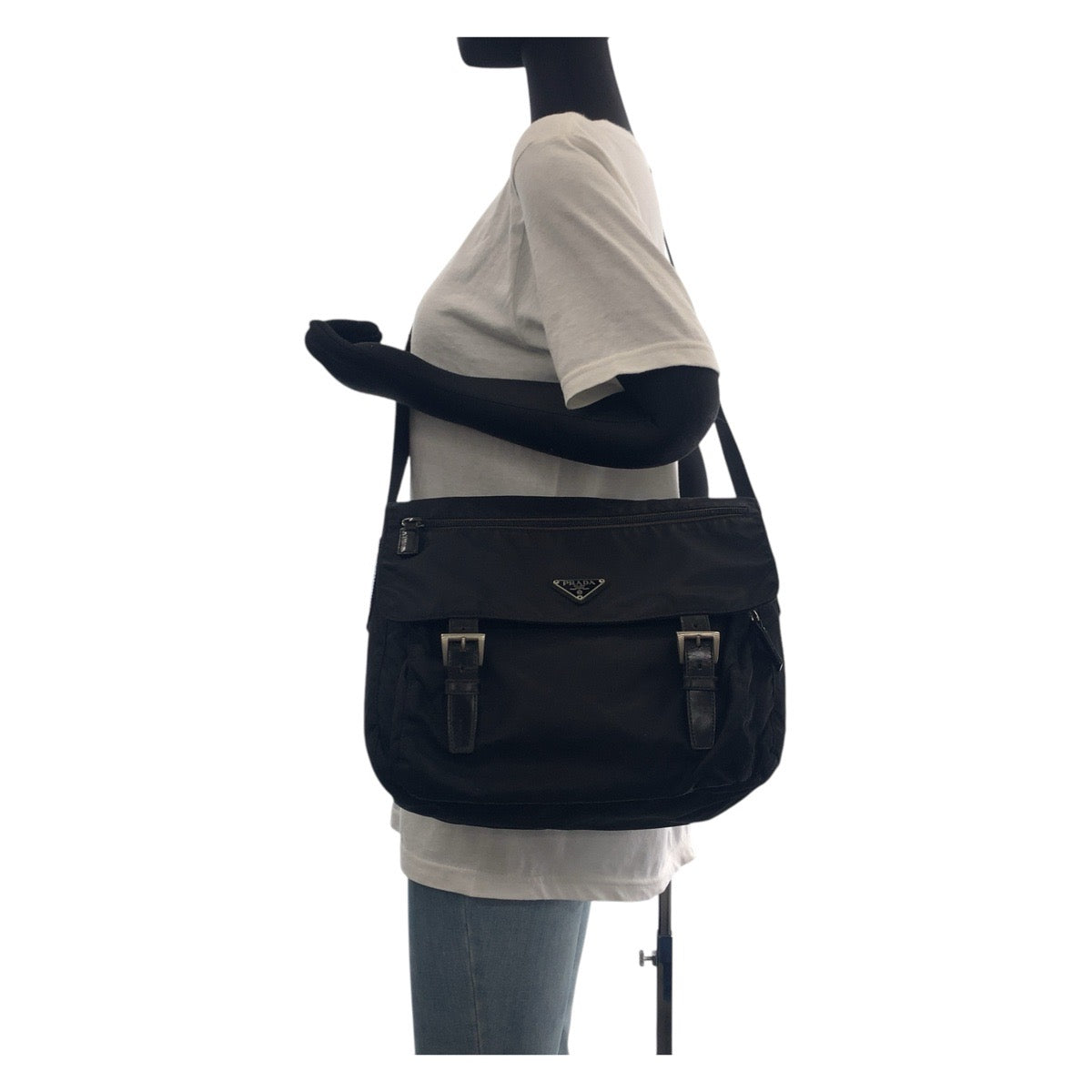 PRADA Shoulder Bag Nylon, Leather black Shoulder Bag pochette Test Triangle With logo Women Used Authentic