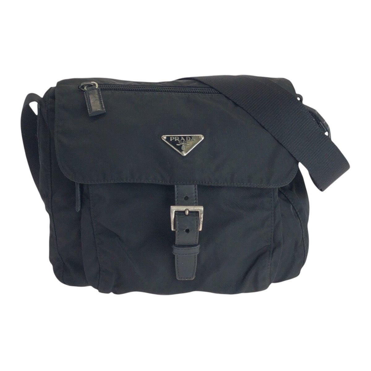 PRADA Shoulder Bag Nylon, Leather Black SilverMetal Shoulder Bag pochette Test Triangle With logo Women(Unisex) Used Authentic