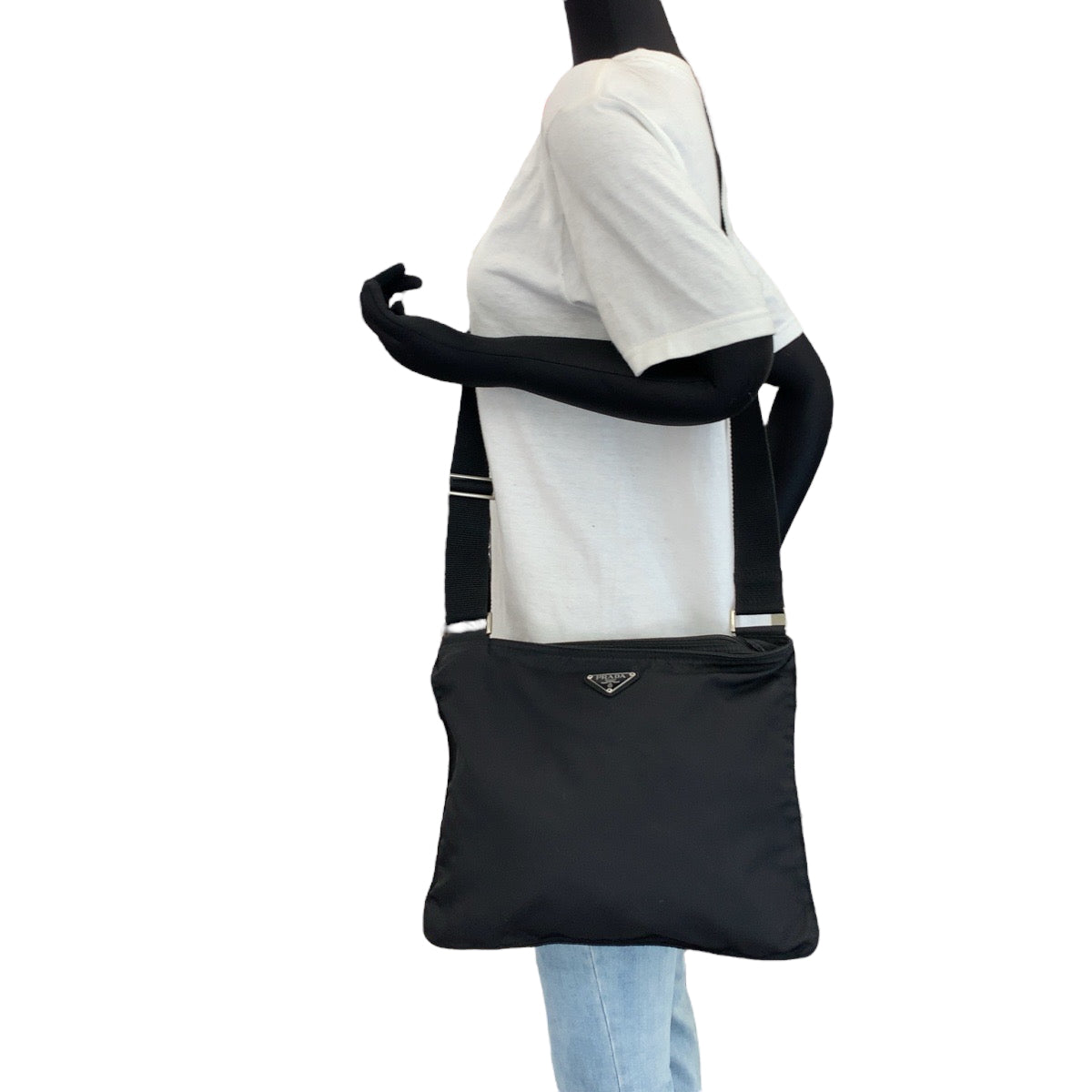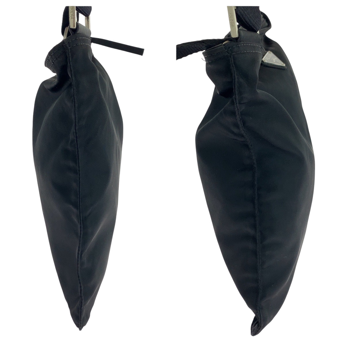 PRADA Shoulder Bag Nylon Black SilverMetal Shoulder Bag Sacoche Test Triangle With logo mens Used Authentic