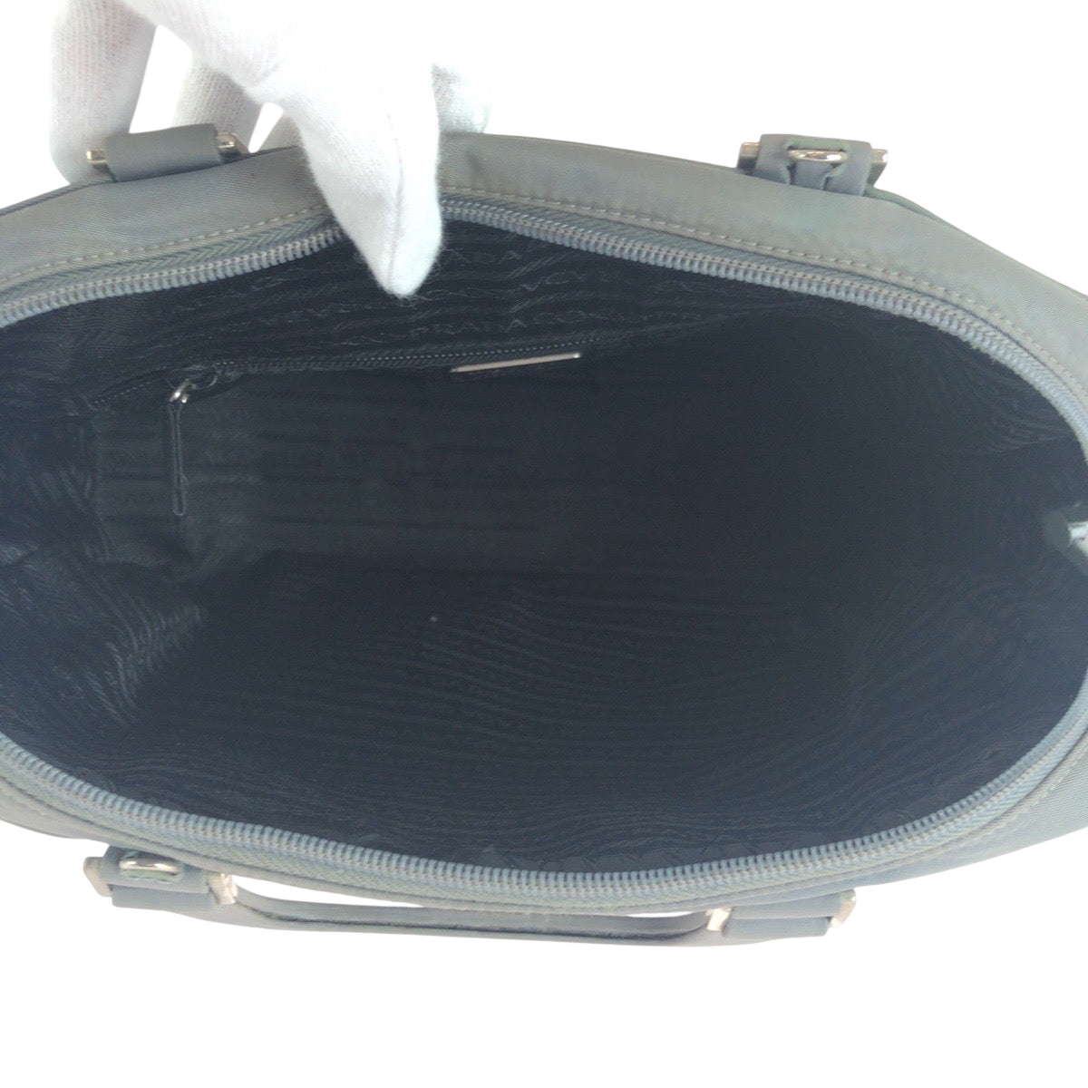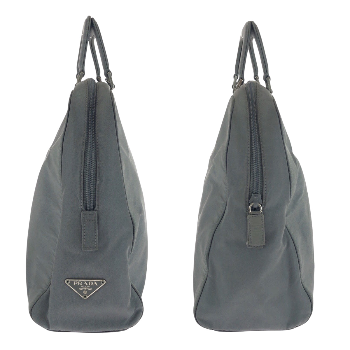PRADA Shoulder Bag Nylon Grey SilverMetal Shoulder Bag Handbag 2way Test Triangle With logo Women Used Authentic