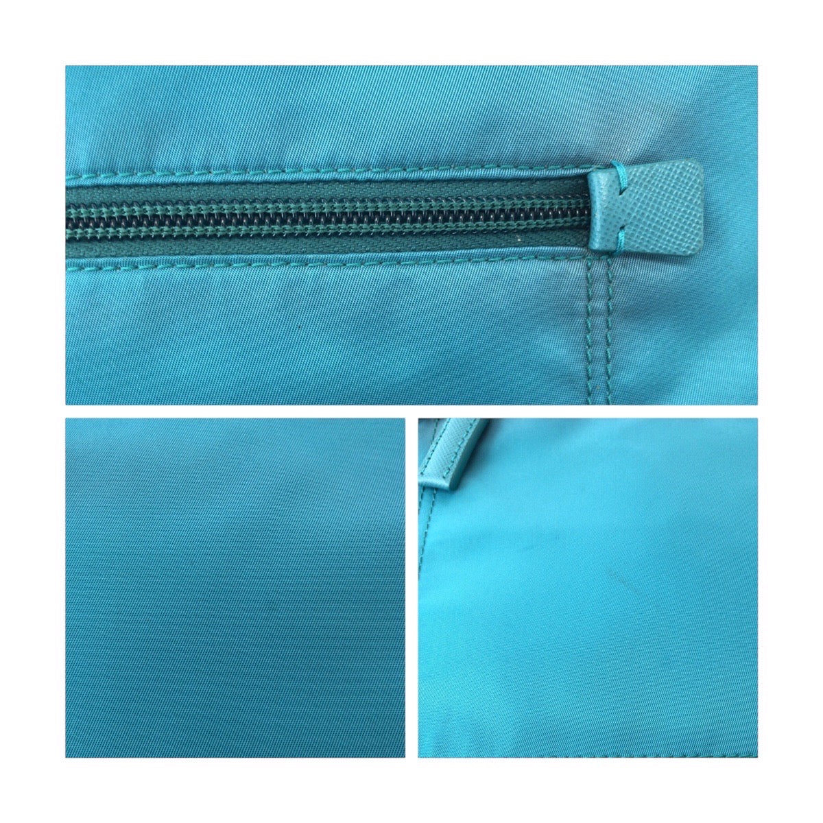 PRADA Shoulder Bag Nylon Light Blue Emerald SilverMetal Shoulder Bag pochette Test Triangle With logo Women Used Authentic