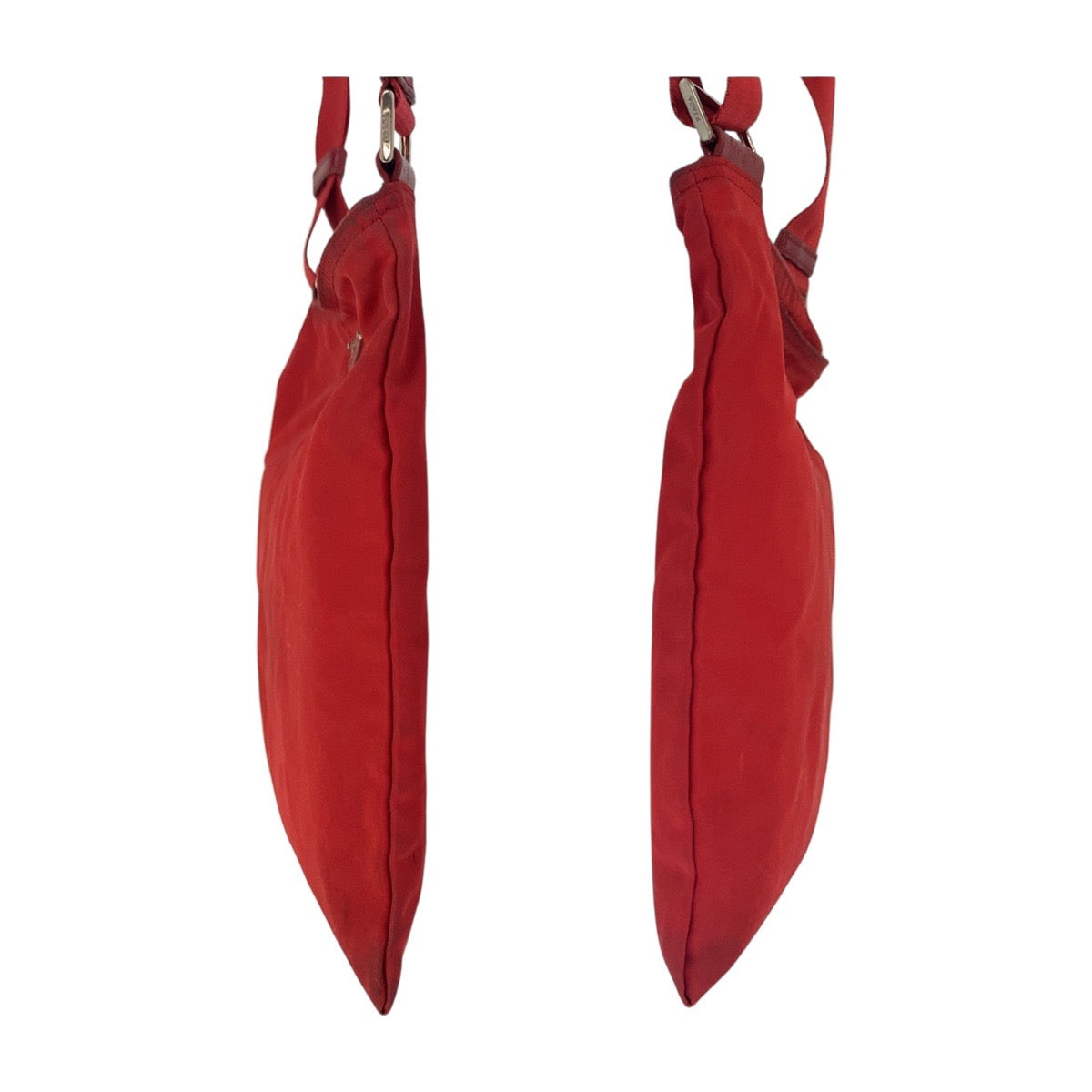 PRADA Shoulder Bag Nylon Red Silver Metal Crossbody Shoulder Bag Test Triangle With logo Women Used Authentic