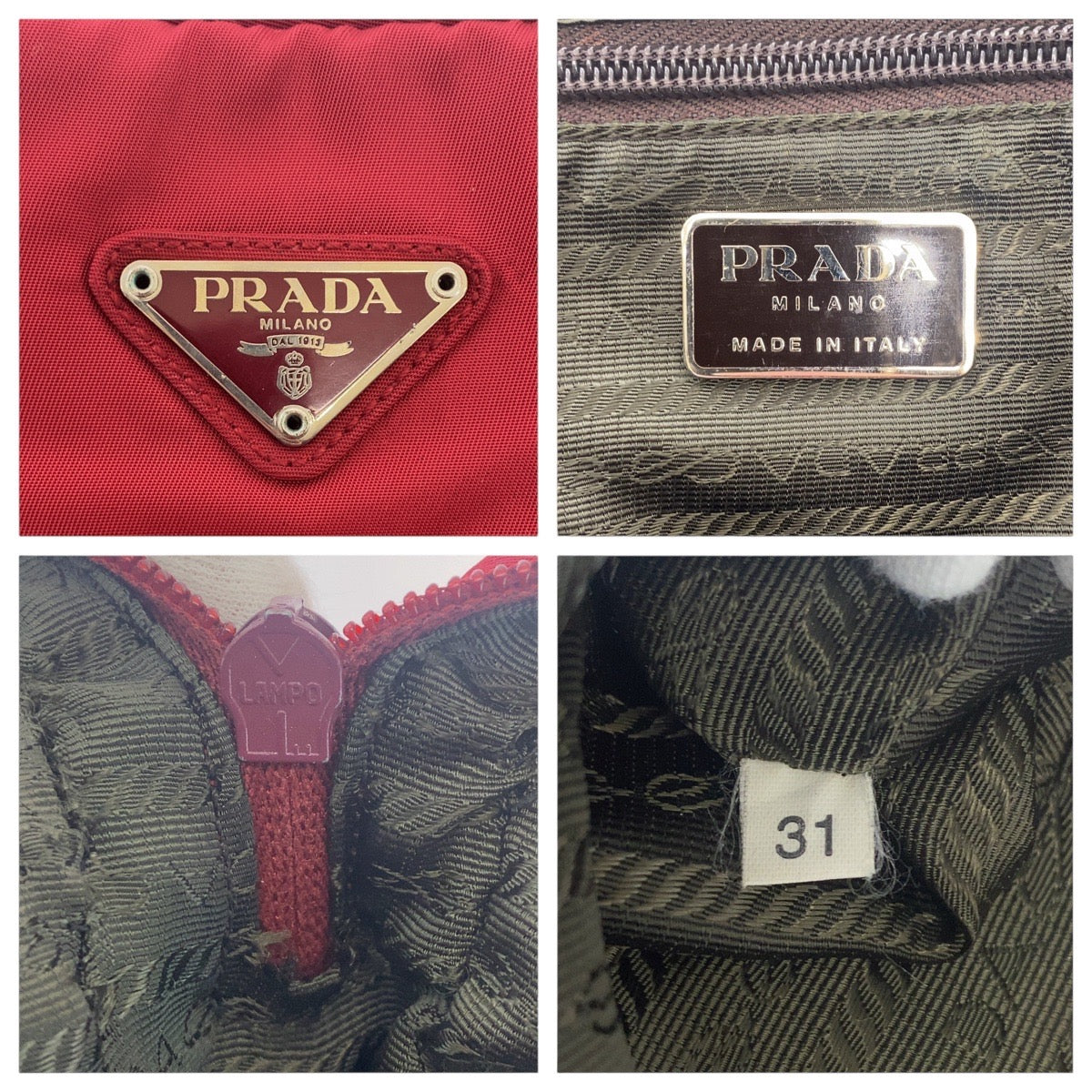 PRADA Shoulder Bag Nylon Red Silver Metal Test Triangle With logo Women Used Authentic