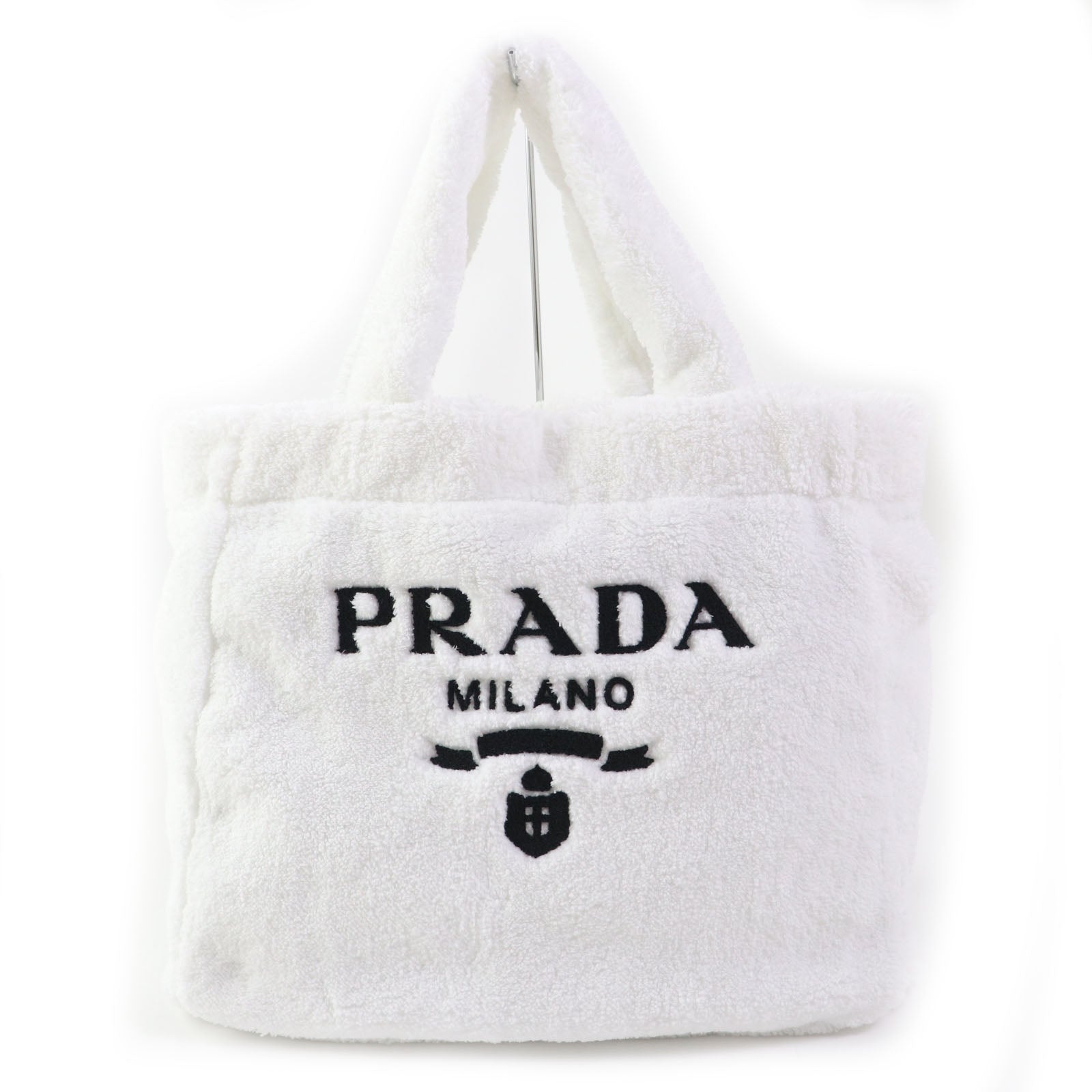 PRADA Tote Bag 1BG130 Pile fabric Bianco Nero terry Women Used Authentic