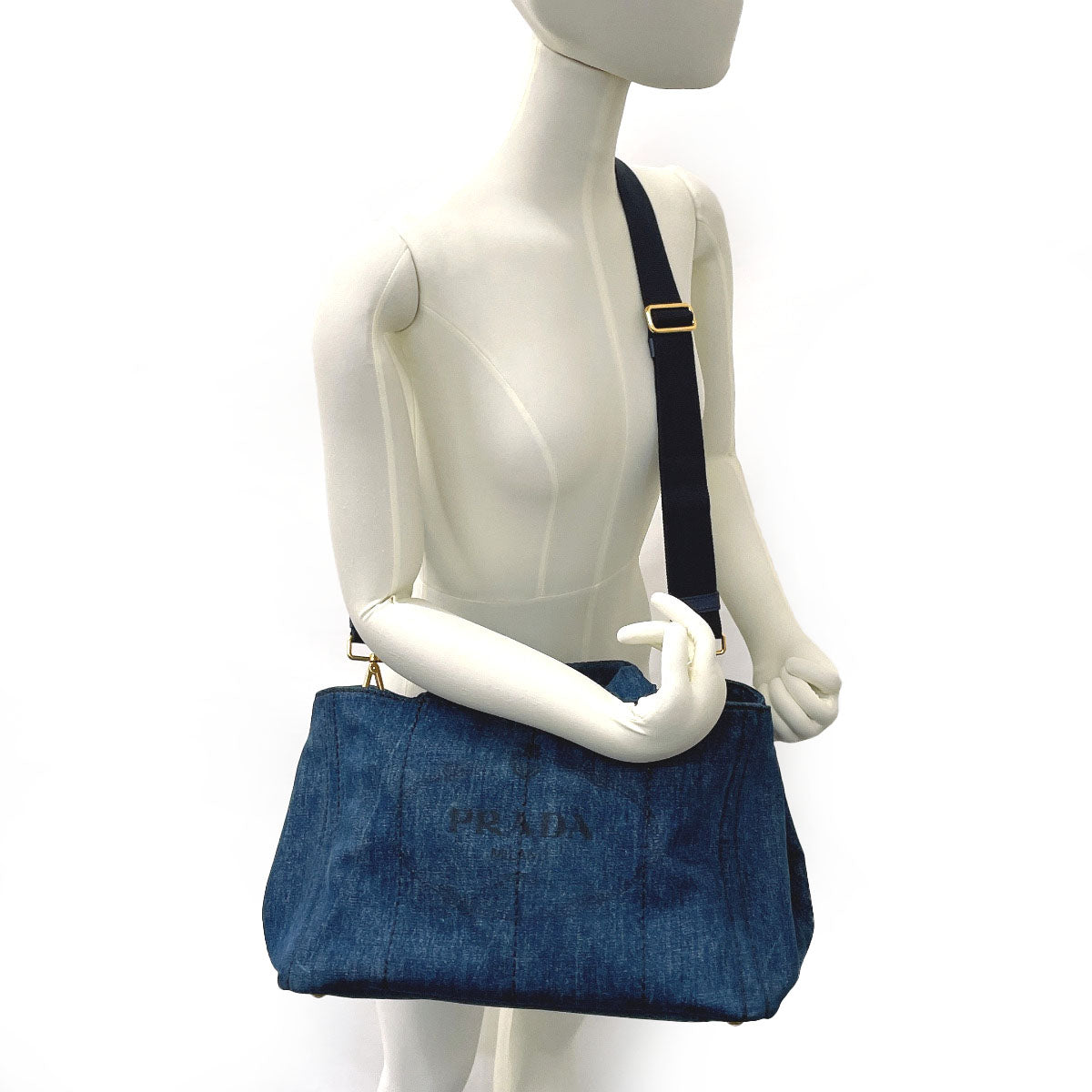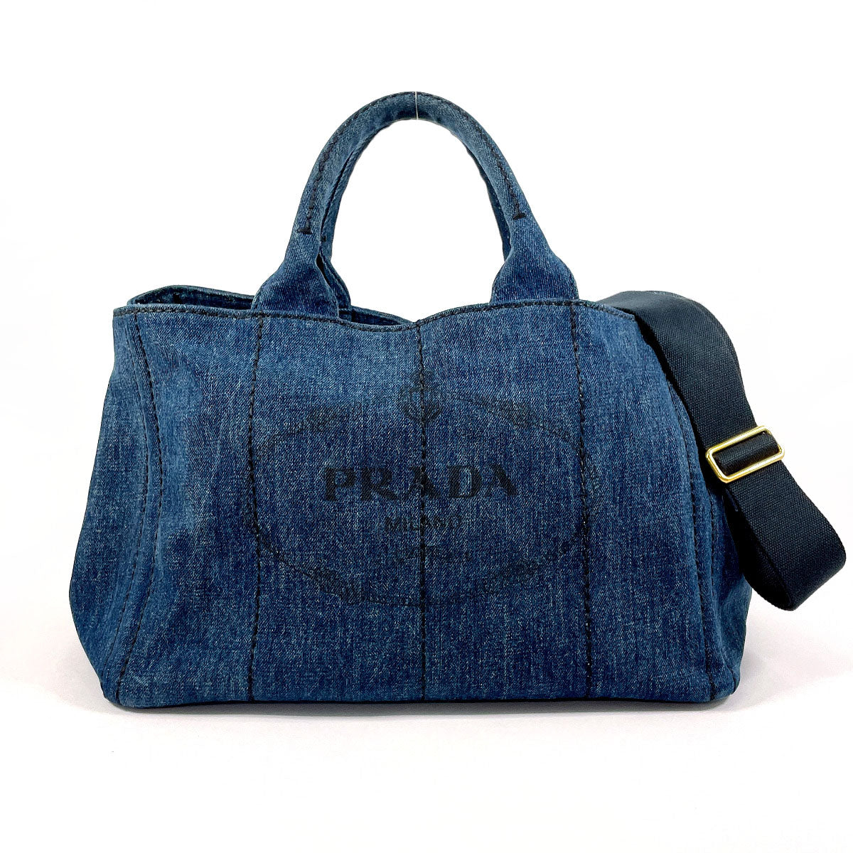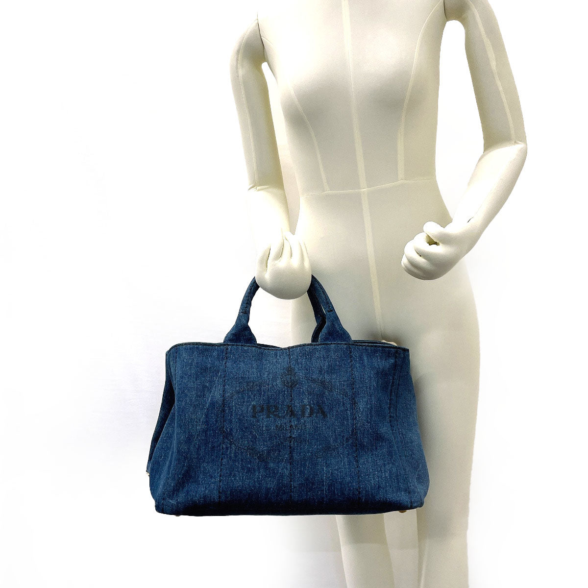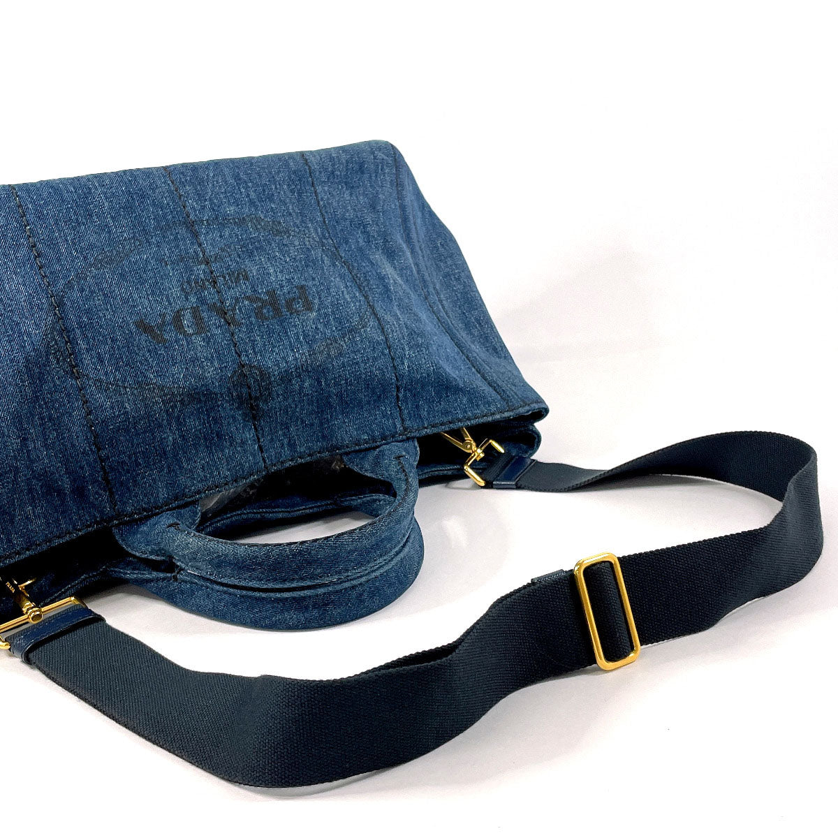 PRADA Tote Bag B2642B denim blue 2WAY Canapa M