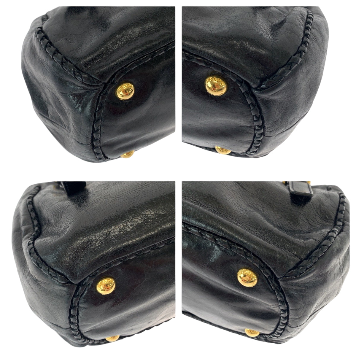 PRADA Tote Bag BN1867 leather Black GoldMetal Tote Bag Shoulder Bag Handbag Vittello Shine ribbon Women Used Authentic