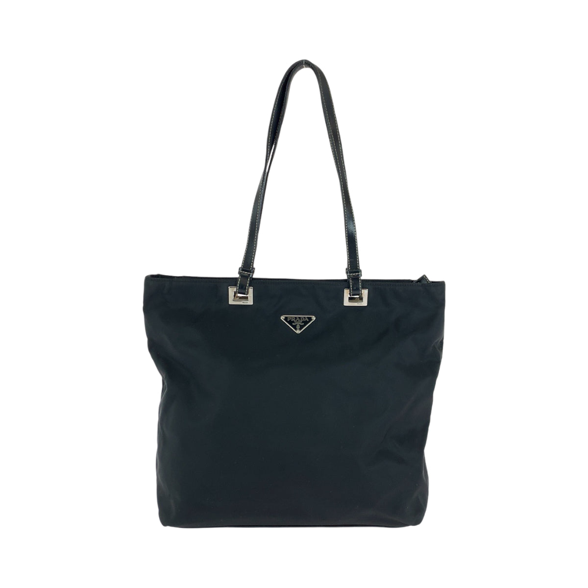 PRADA Tote Bag BR0407 Nylon Black SilverMetal Tote Bag Shoulder Bag Test Triangle With logo Women Used Authentic