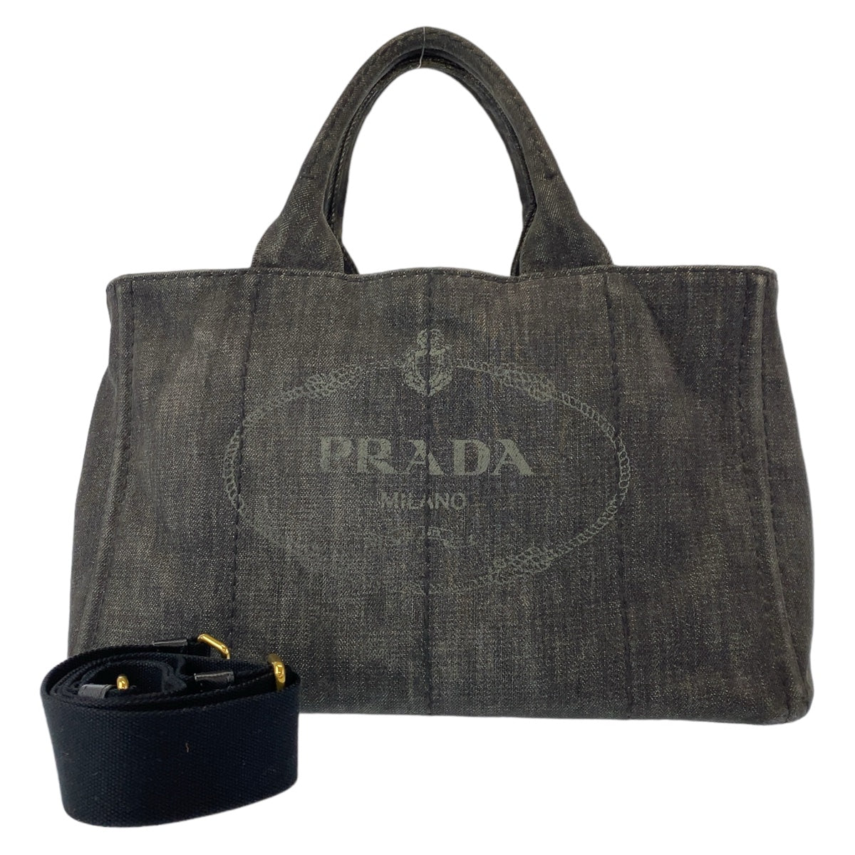 PRADA Tote Bag Canvas, Leather Khaki Brown SilverMetal Tote Bag Shoulder Bag Unisex Triangle With logo Women Used Authentic