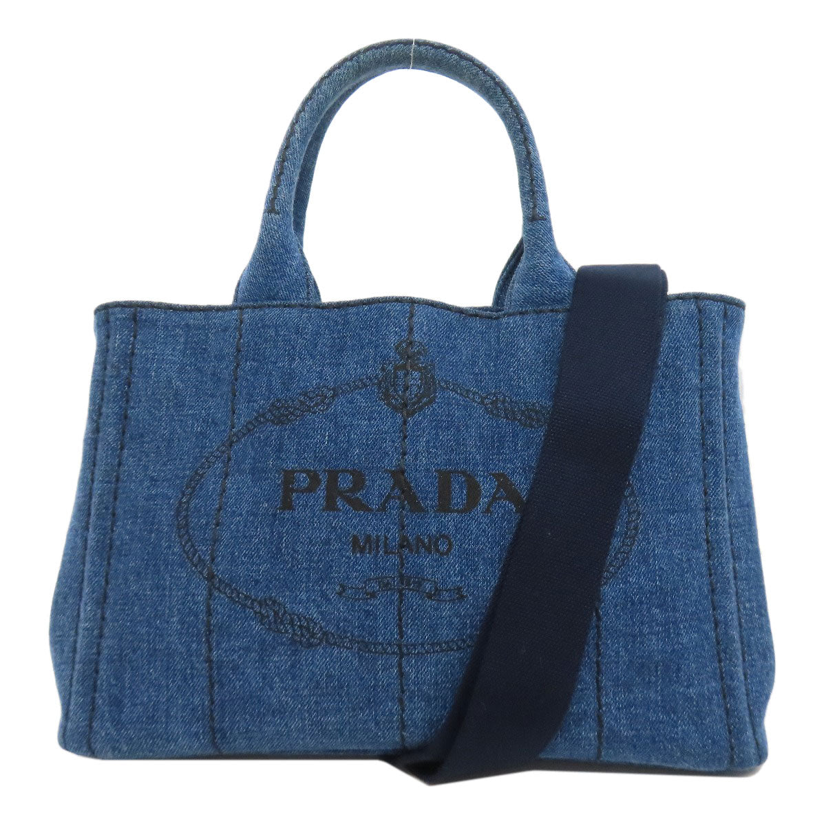 PRADA Tote Bag Cotton denim Grey GoldMetal 2way Tote Bag Crossbody Shoulder Bag Canapa Triangle With logo Women Used Authentic