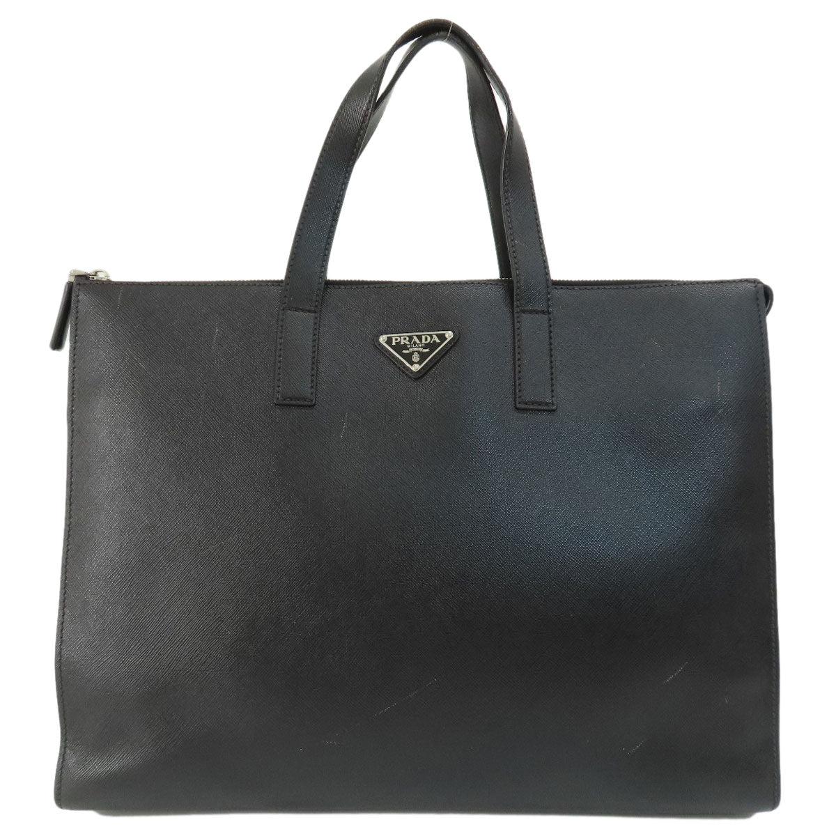 PRADA Tote Bag leather black logo Women Used Authentic