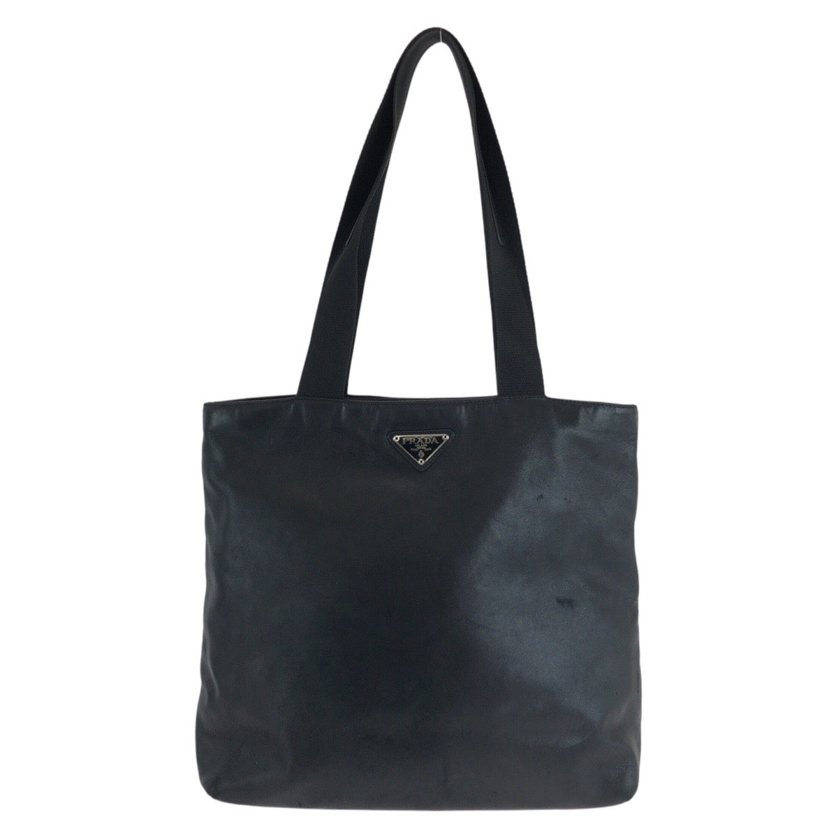 PRADA Tote Bag leather Black SilverMetal Tote Bag Shoulder Bag 2way Vittero Dyno Triangle With logo Women Used Authentic