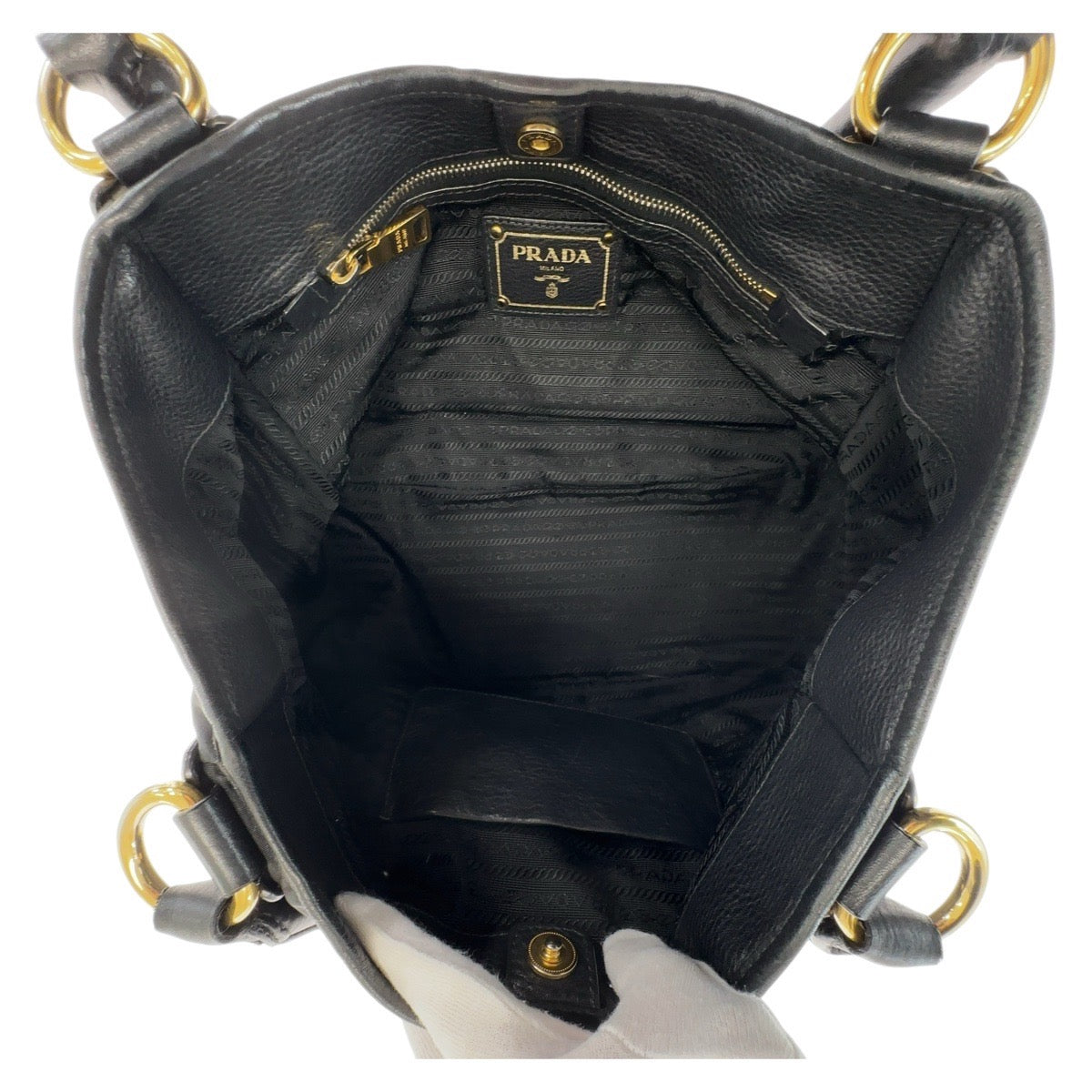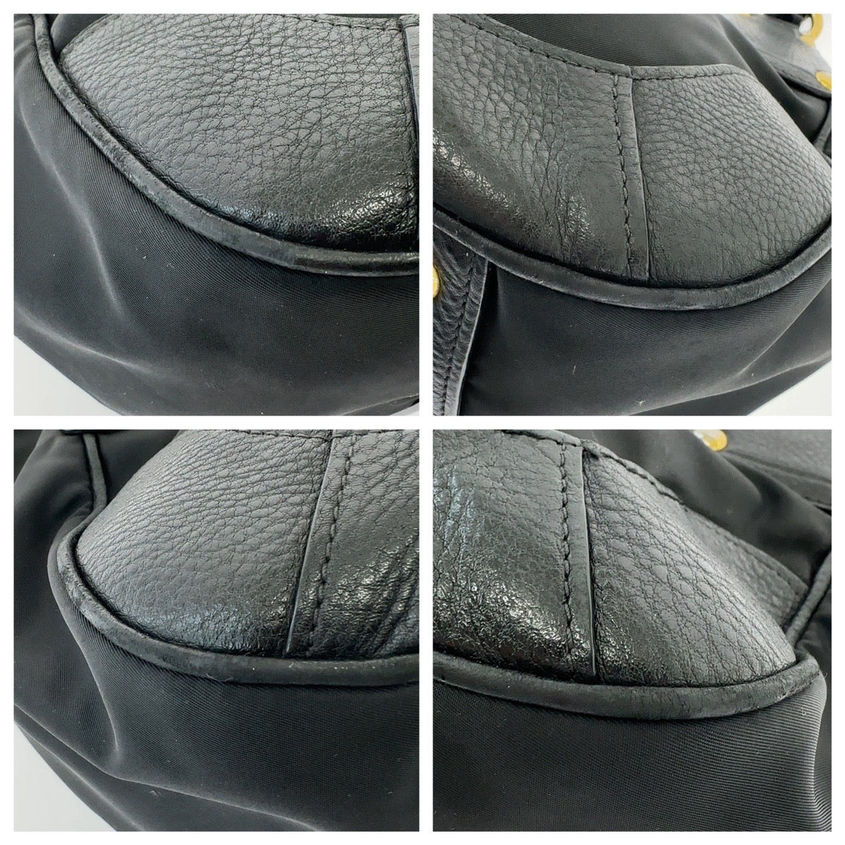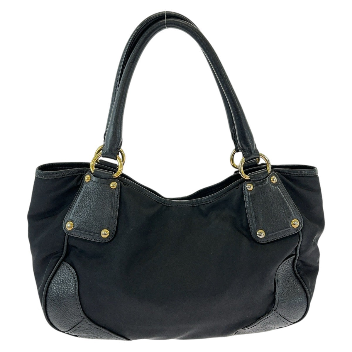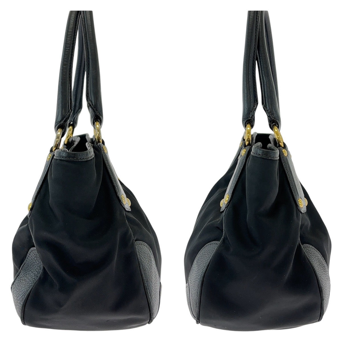 PRADA Tote Bag Nylon, Leather Black GoldMetal Tote Bag Shoulder Bag Handbag Women Used Authentic