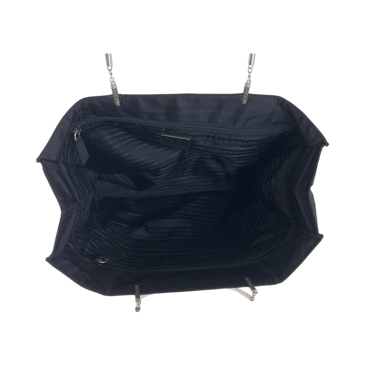 PRADA Tote Bag Nylon Black SilverMetal Tote Bag handbag Test Triangle With logo Women Used Authentic