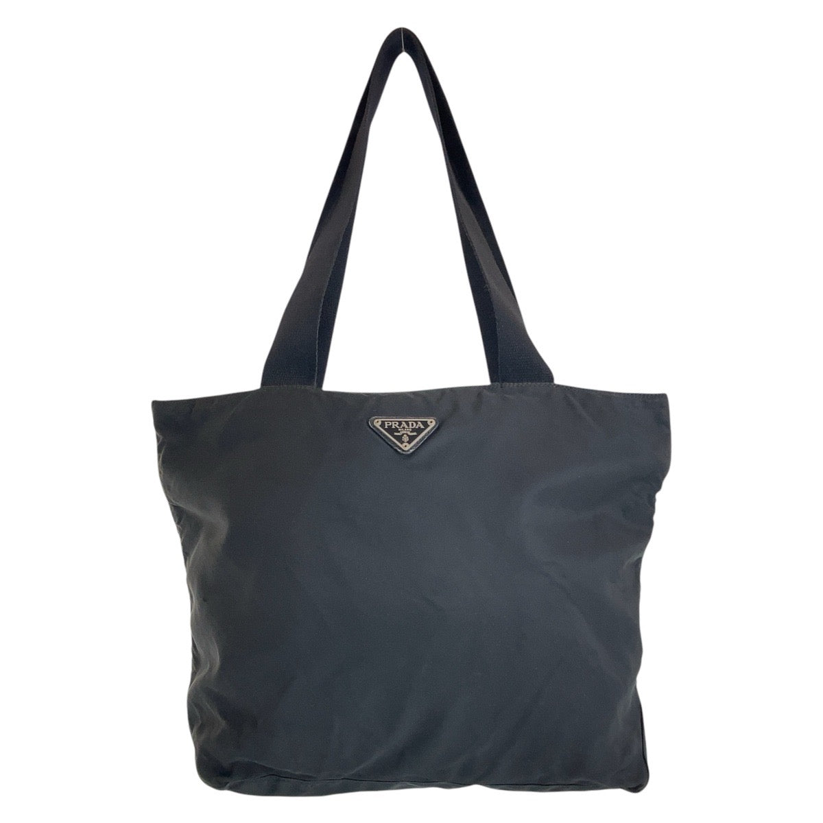 PRADA Tote Bag Nylon Black SilverMetal Tote Bag Shoulder Bag Test Triangle With logo Women Used Authentic