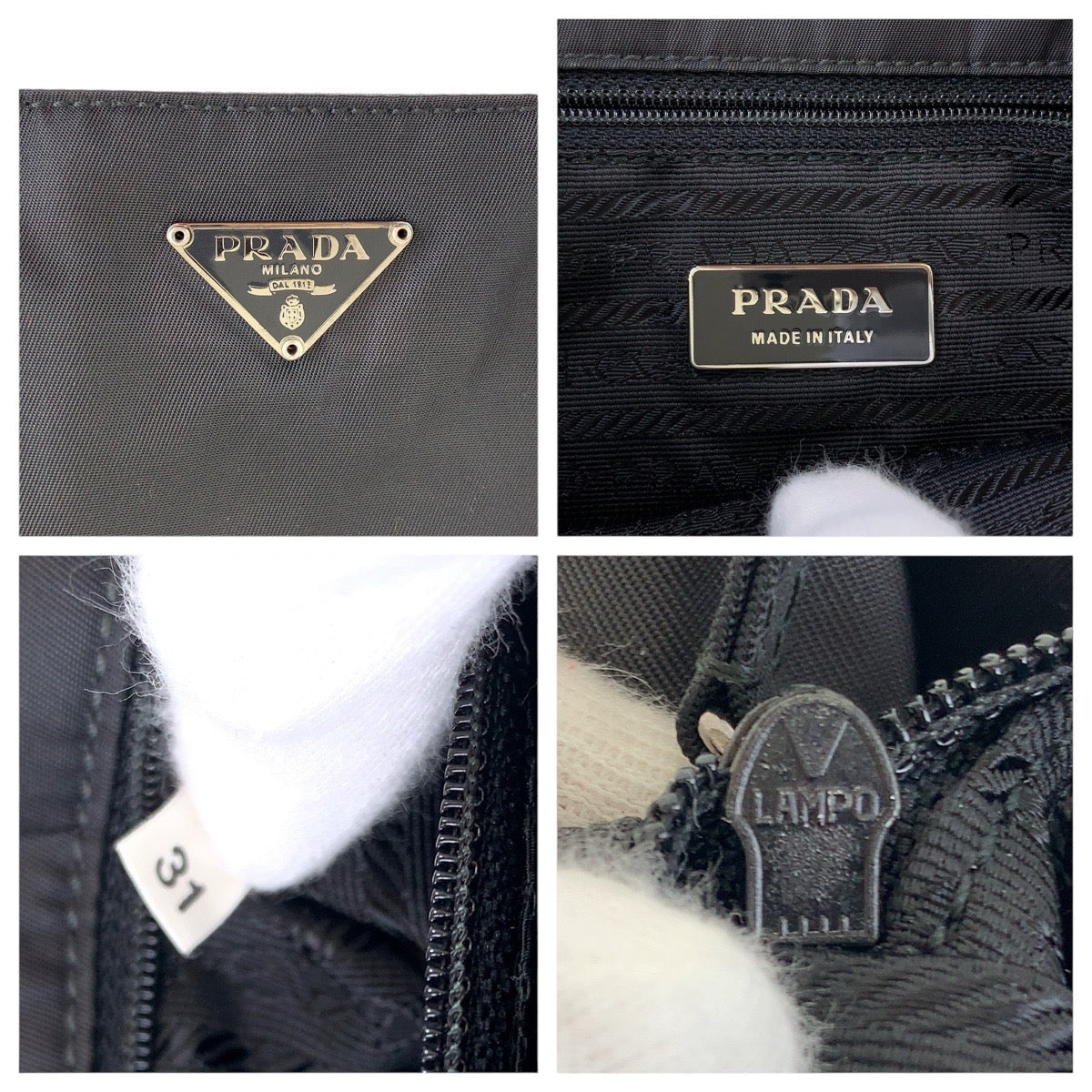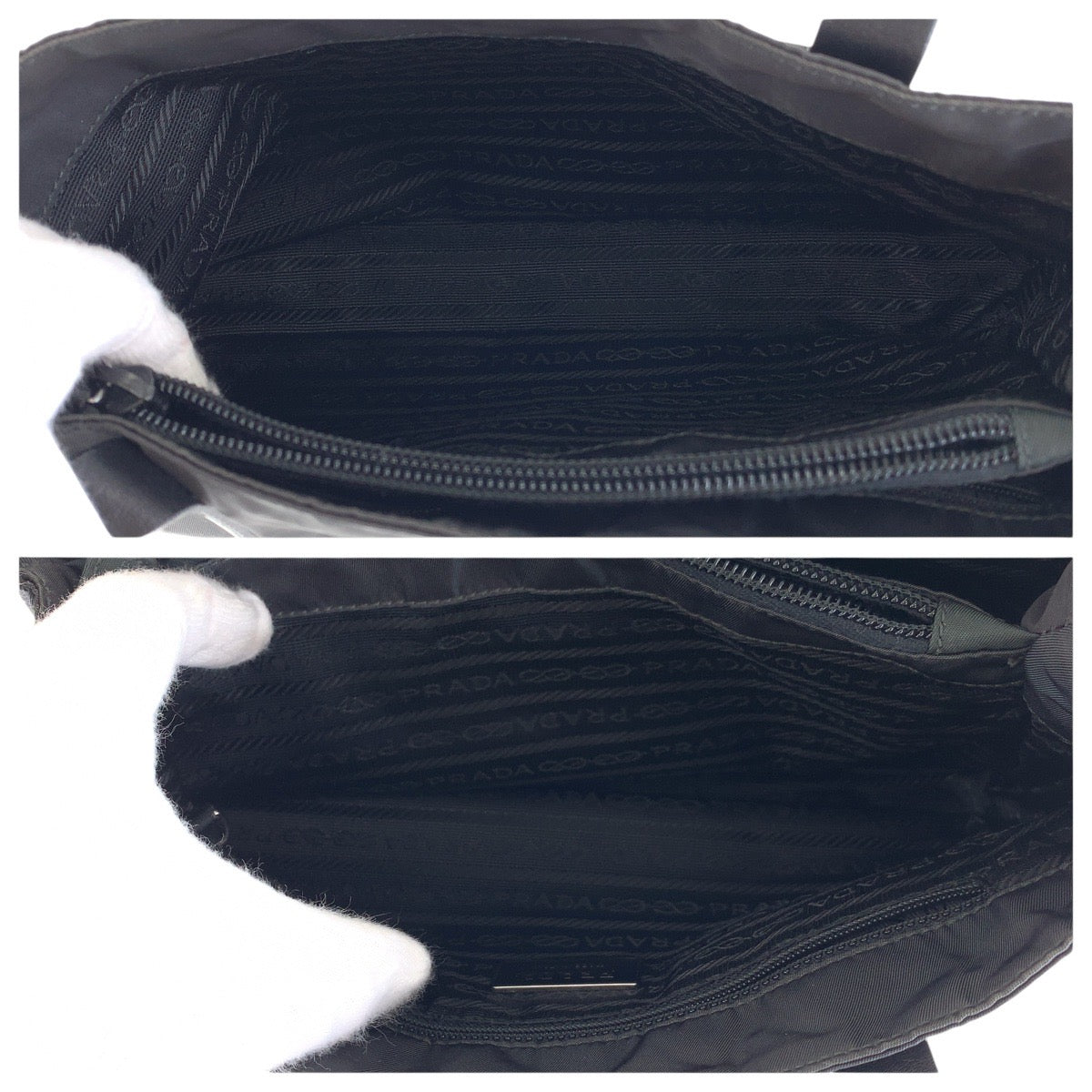 PRADA Tote Bag Nylon, Leather Black SilverMetal Tote Bag handbag Test Triangle With logo Women Used Authentic