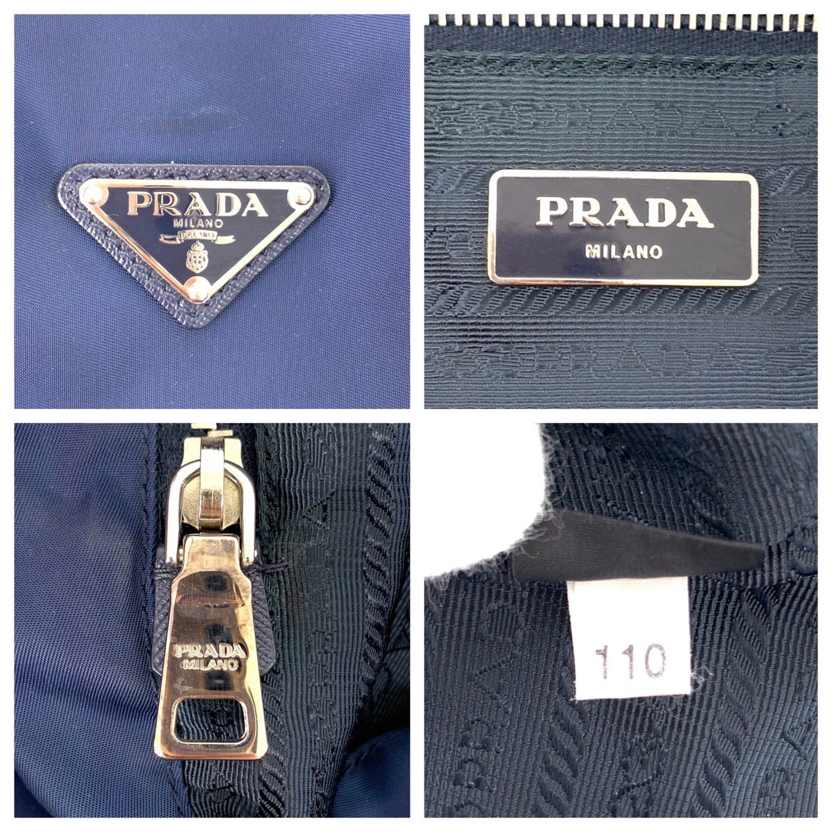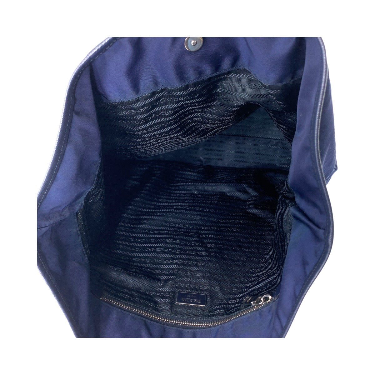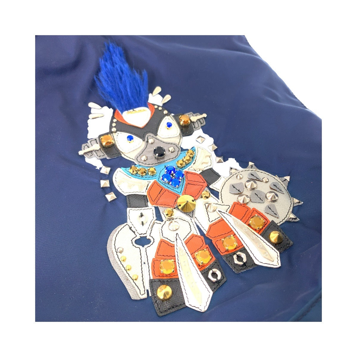 PRADA Tote Bag Nylon Navy SilverMetal Tote Bag Shoulder Bag Tessuto Robot Patchwork Bijou Triangle With logo Women Used Authentic