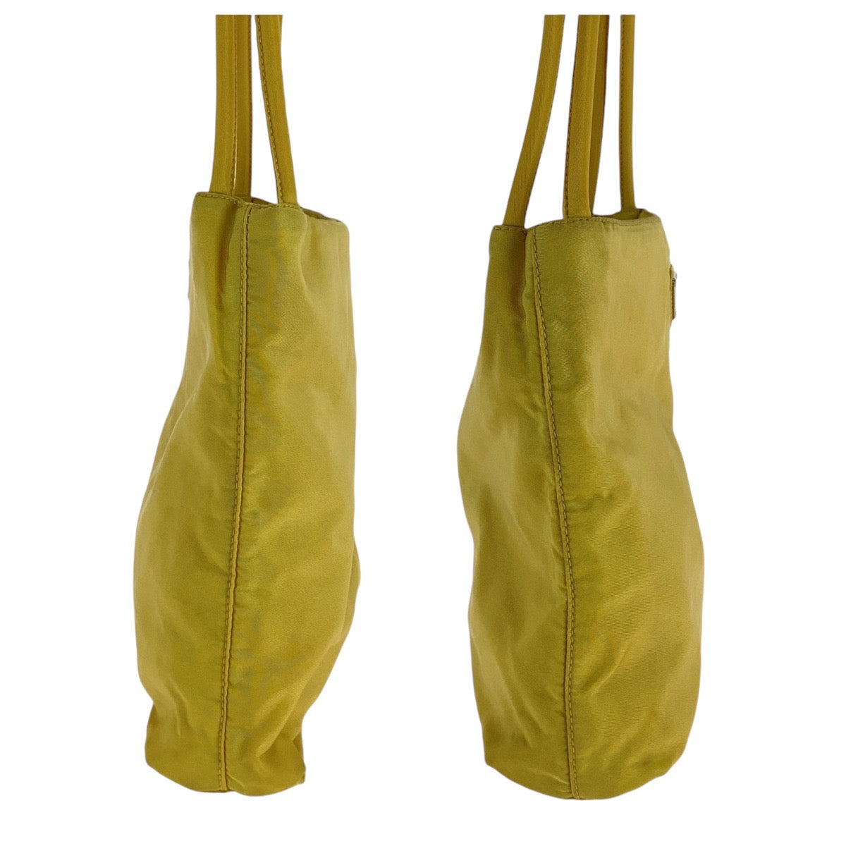 PRADA Tote Bag Nylon Yellow SilverMetal Shoulder Bag Tote Bag Test Triangle With logo Women Used Authentic