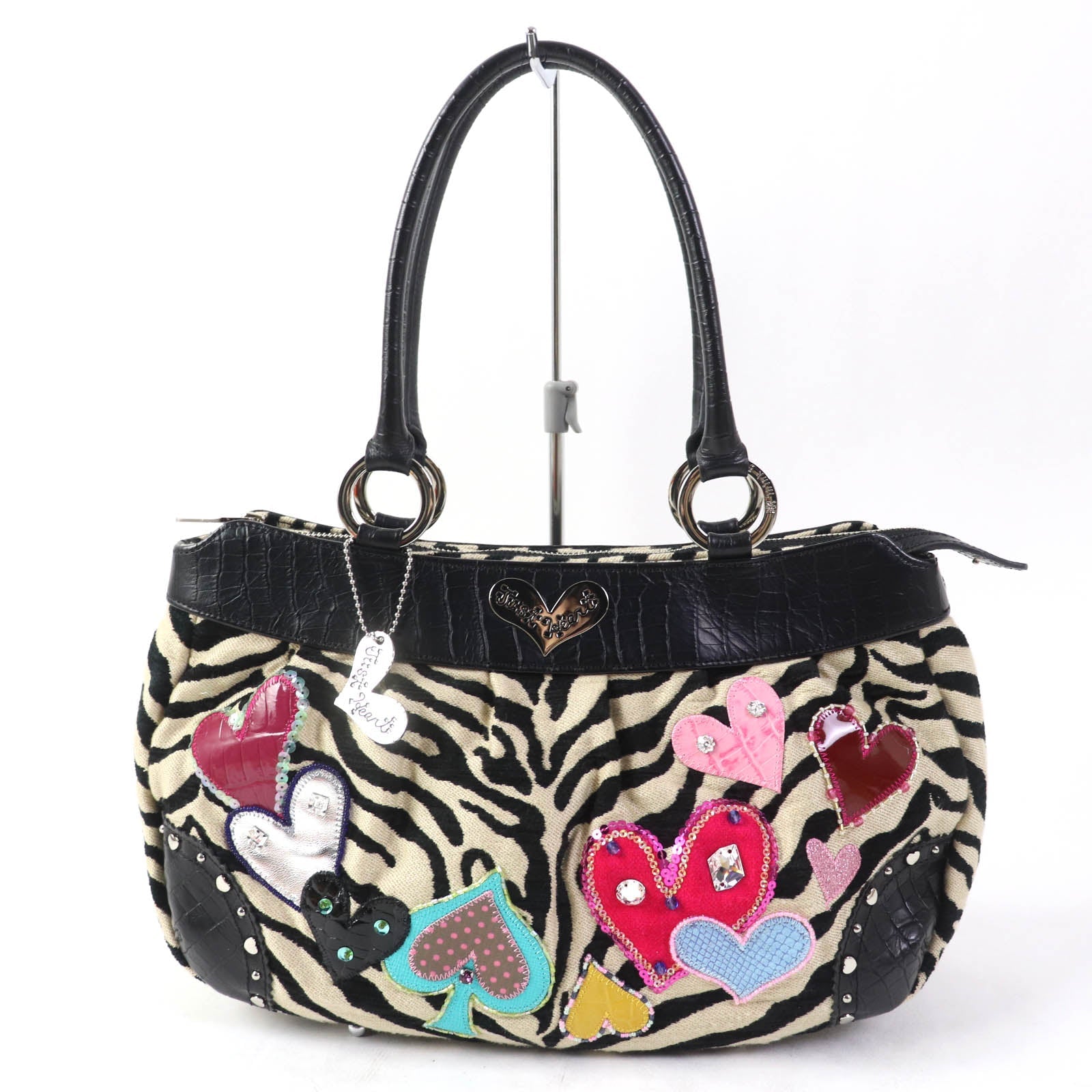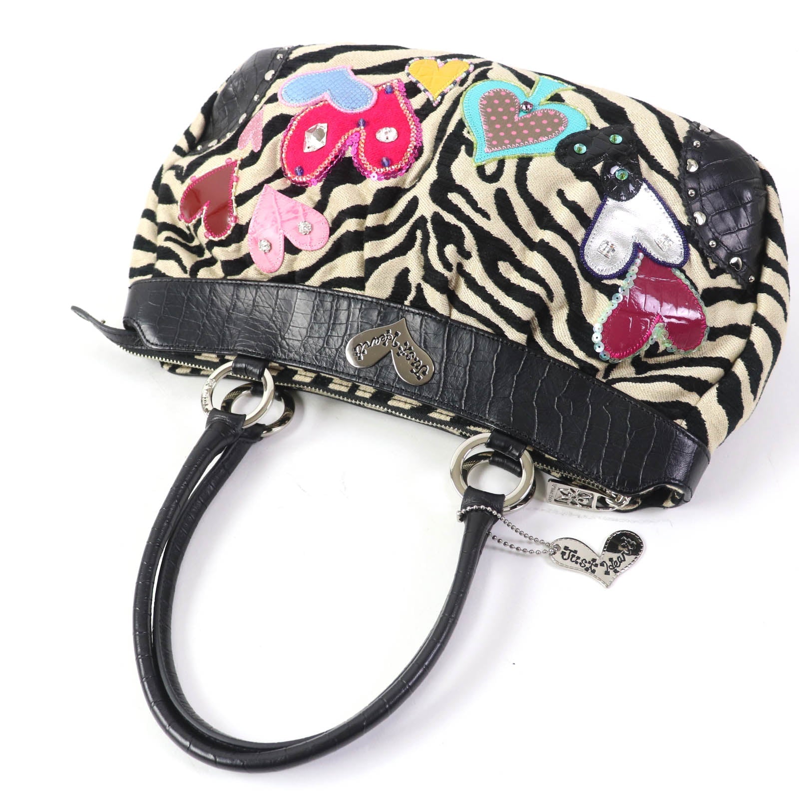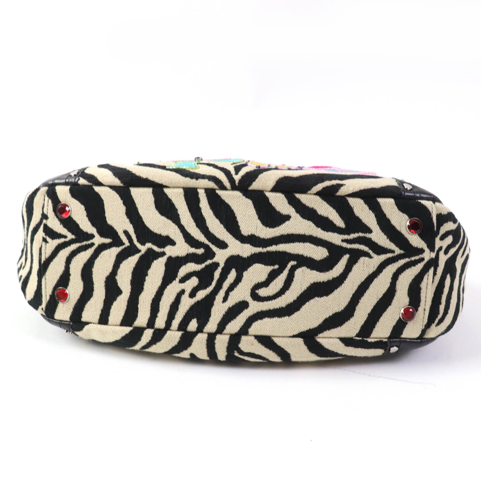 thinkbee Handbag leather multicolor Tote Bag Animal Pattern Bijou Sequin Beads Logo Just Heart Punkish Zebra Women Used Authentic