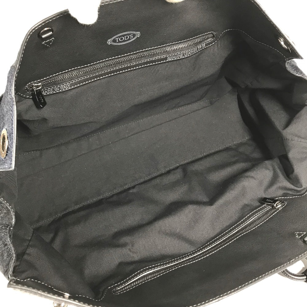 TOD’S Tote Bag Harako Black x navy Shoulder Bag Shoulder Bag Grid pattern