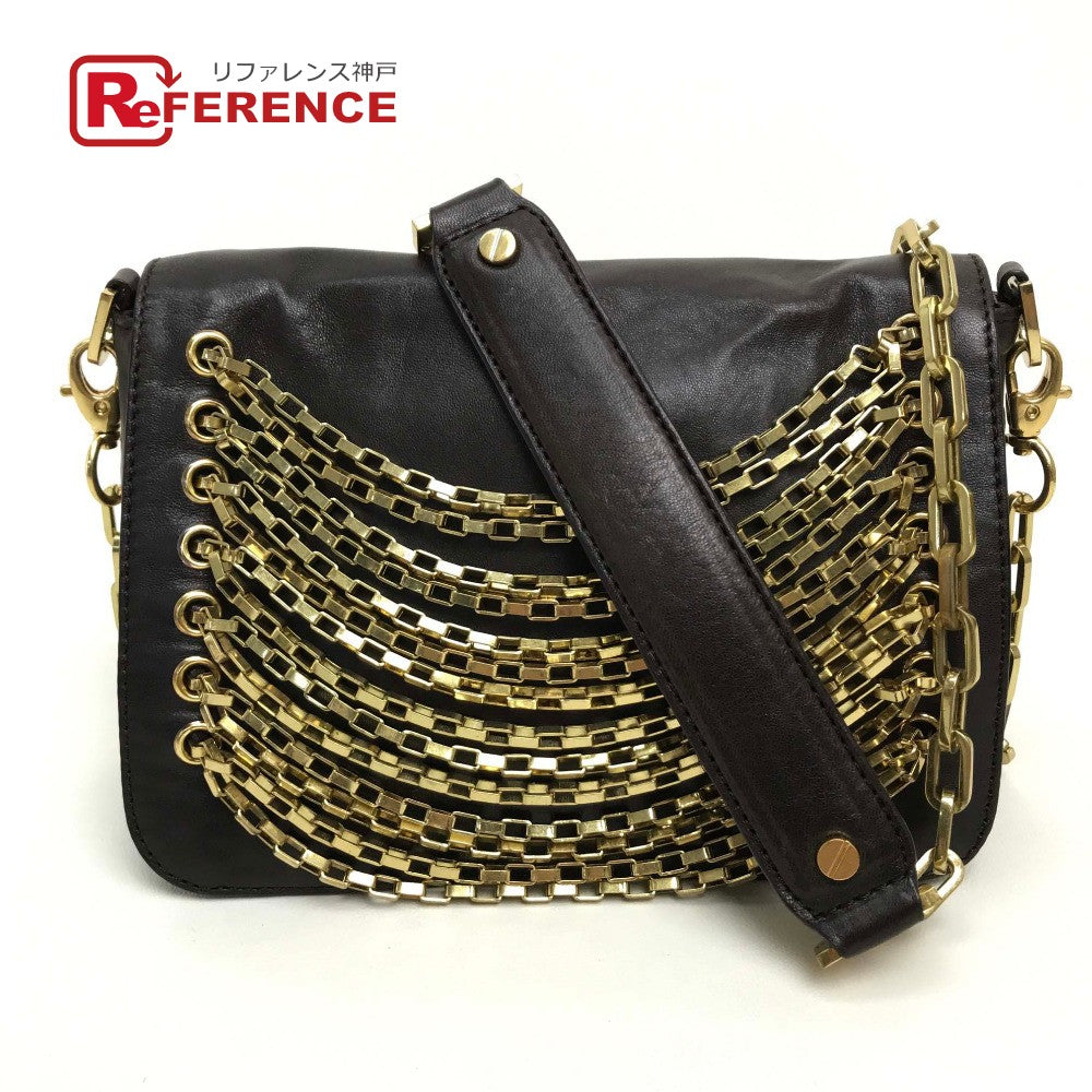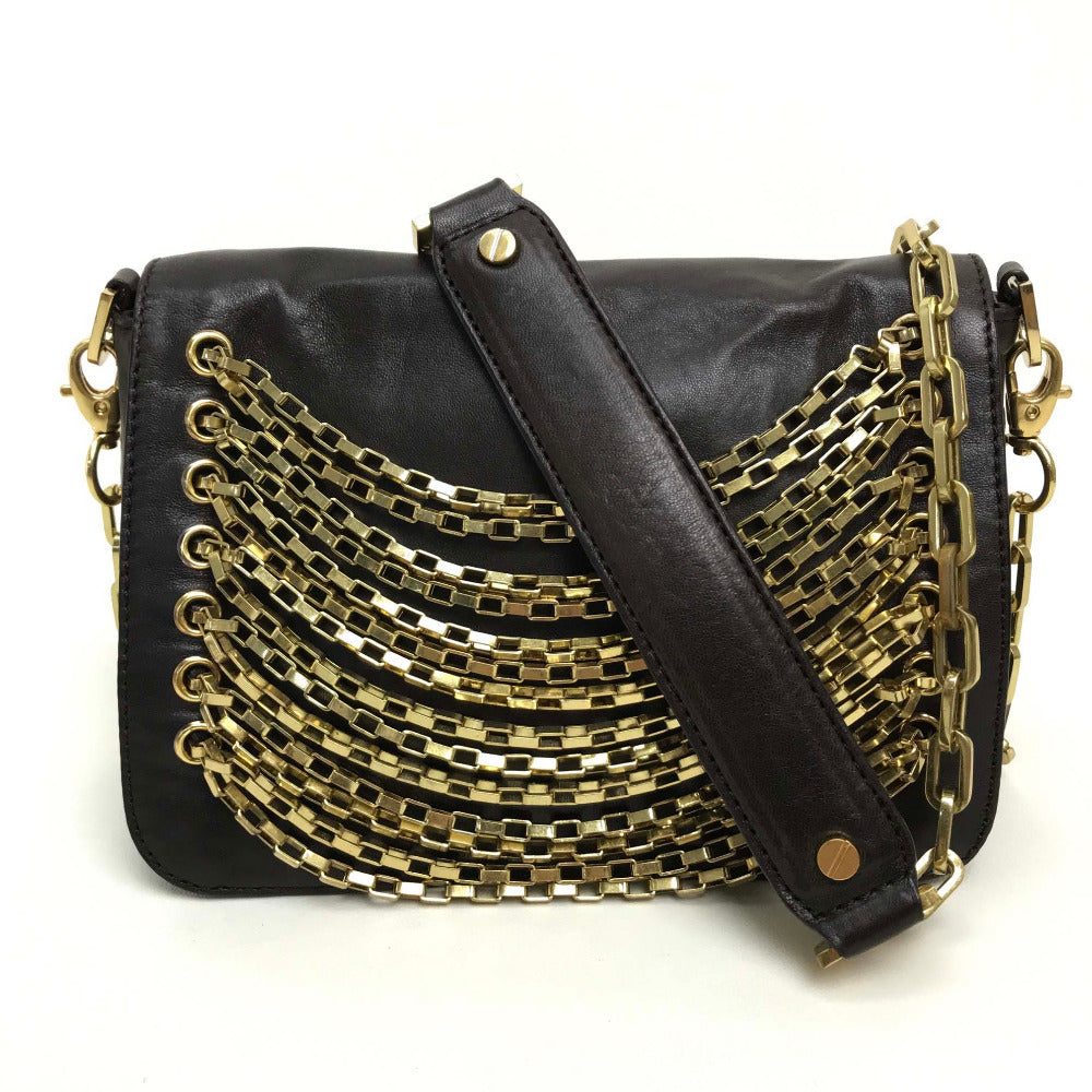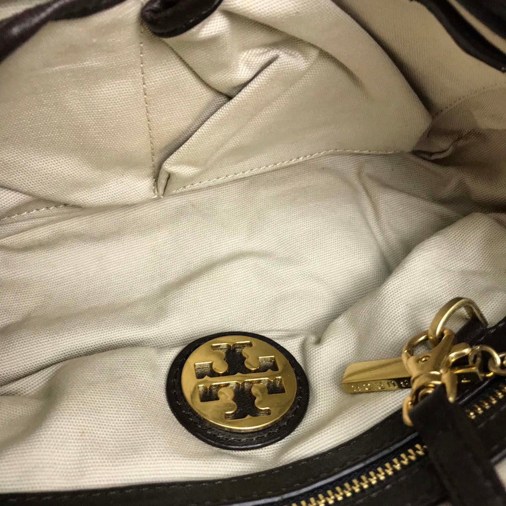 Tory Burch Shoulder Bag leather Dark brown Mini bag pouch Stacking design
