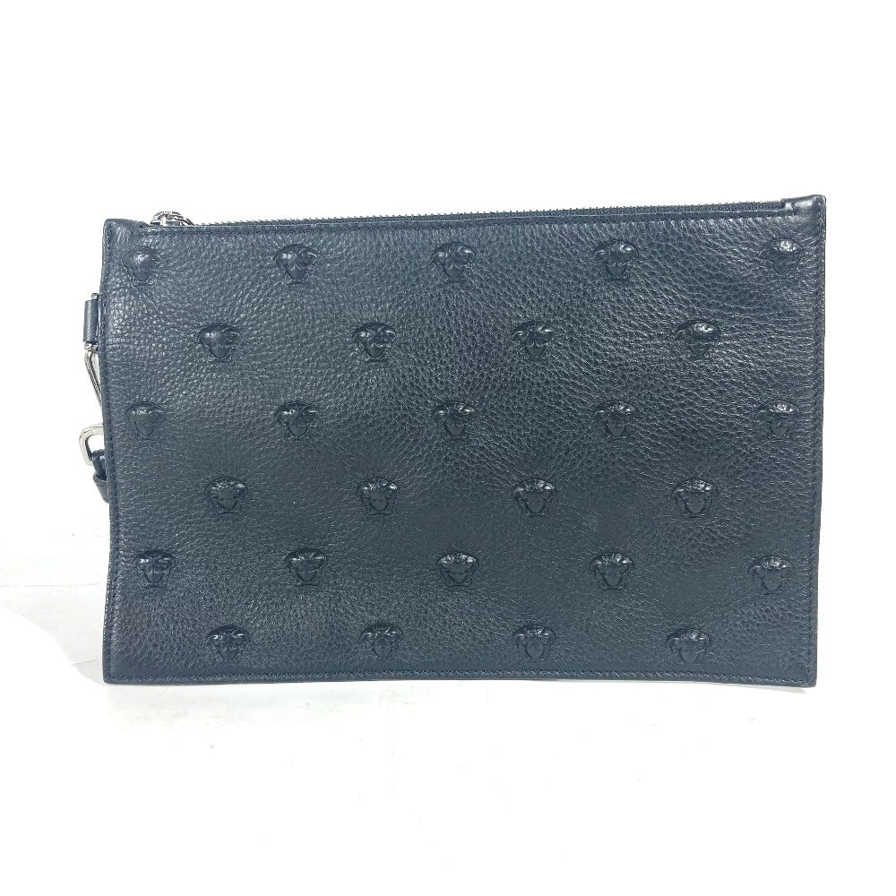 VERSACE Clutch bag leather black logo unisex(Unisex) Used Authentic