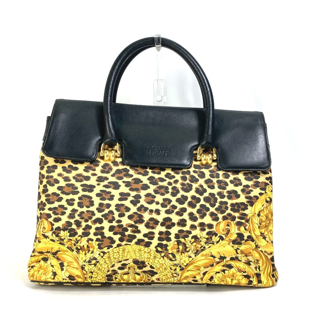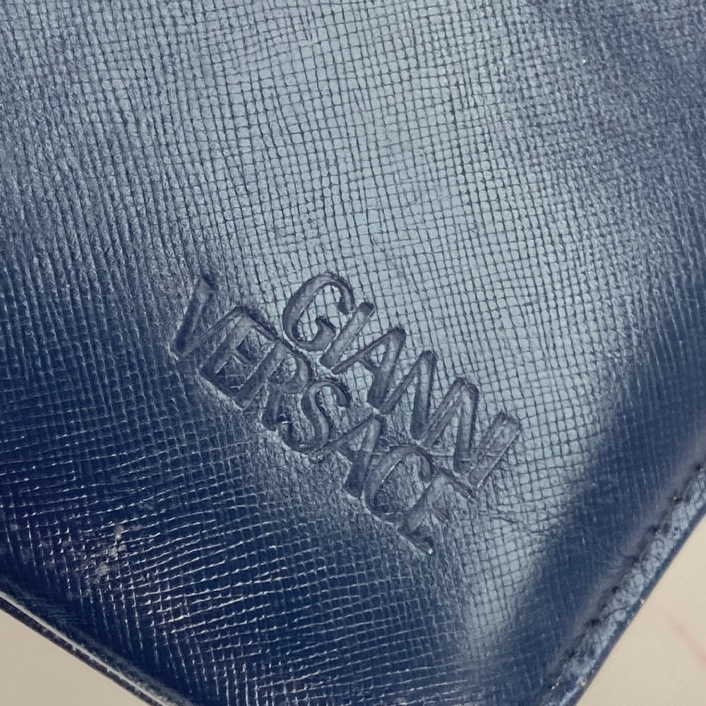 VERSACE Handbag leather Navy vintage Bag Sunburst Women Used Authentic