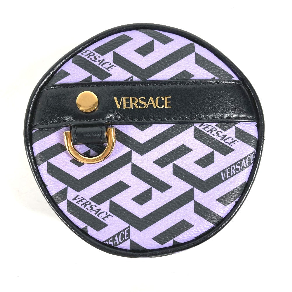 VERSACE Pouch leather gray Total logo Lagreca Square Women Used Authentic