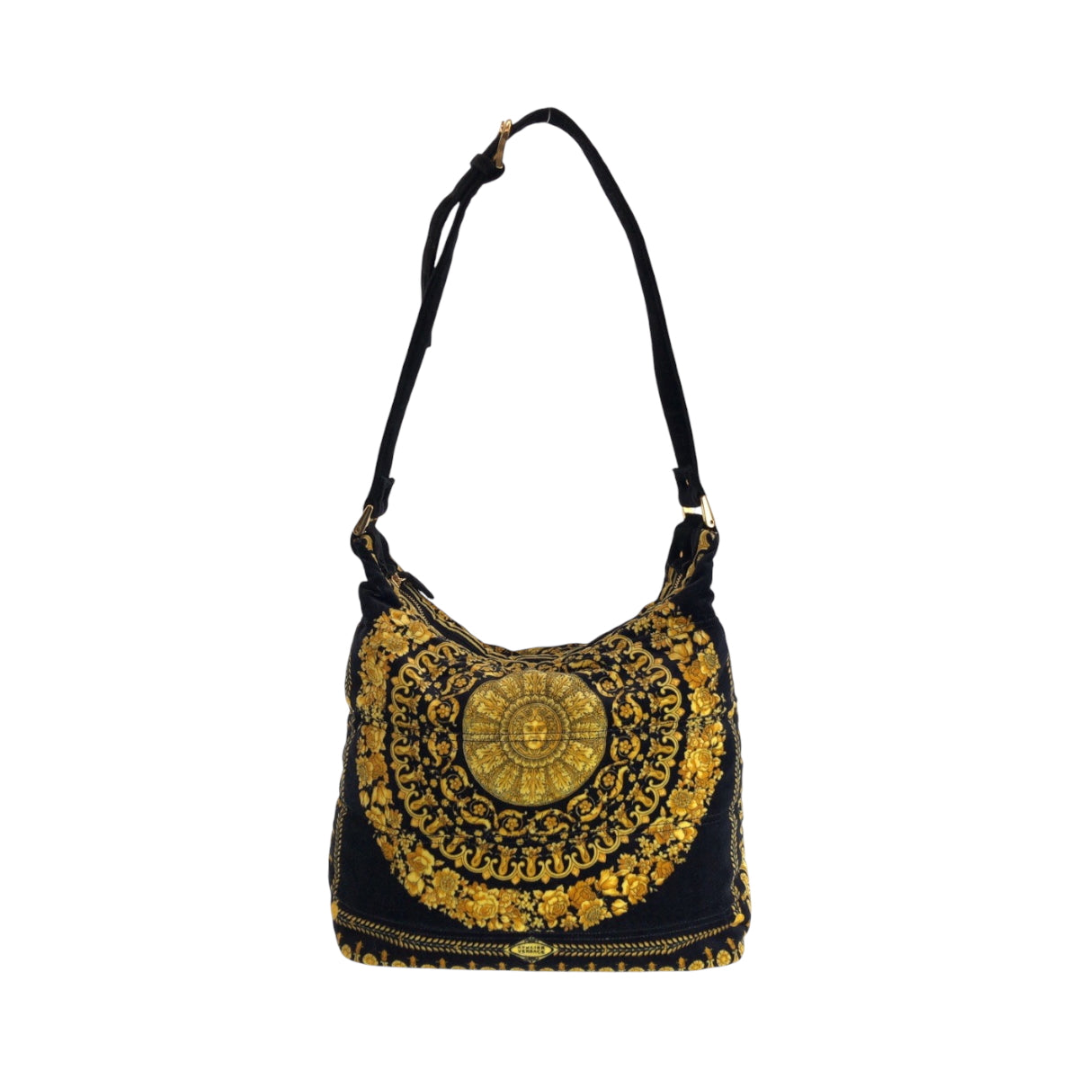 VERSACE Shoulder Bag cotton multicolor Tote Bag Shoulder bag Baroque Pattern Women Used Authentic