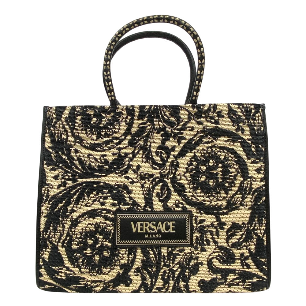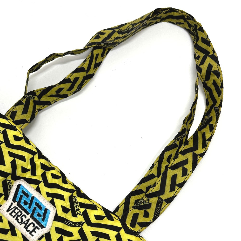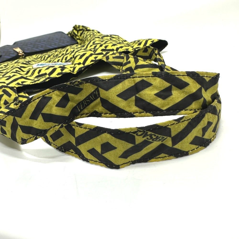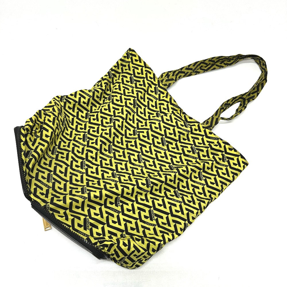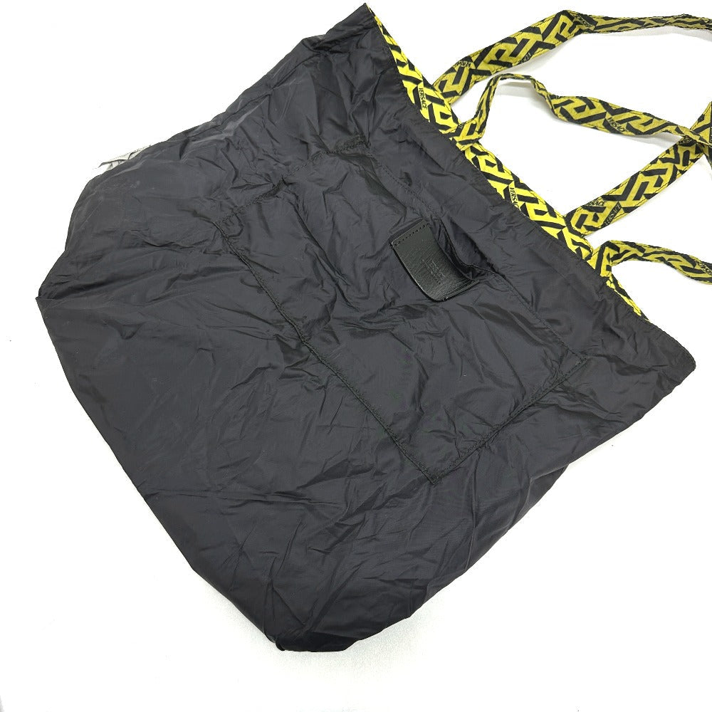 VERSACE Tote Bag Nylon, Leather blue bag eco bag Greca folding Women Used Authentic