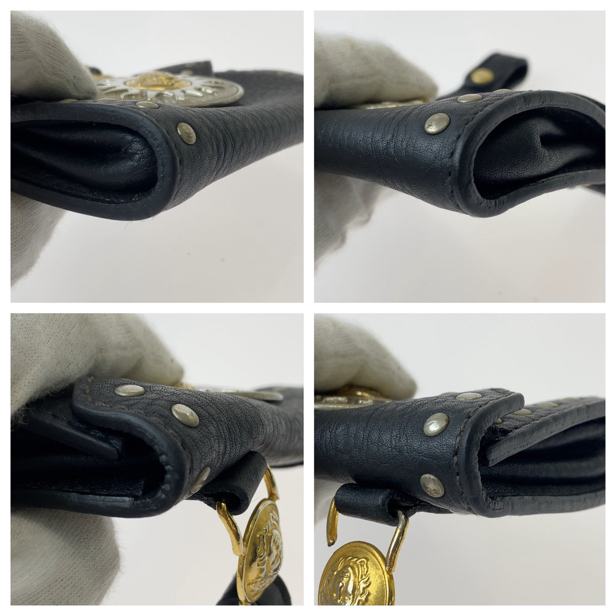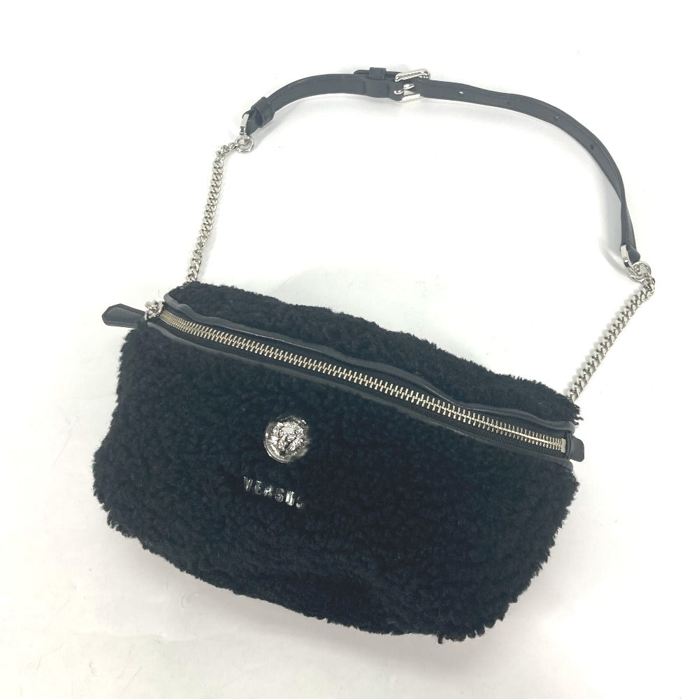 VERSACE Waist bag leather black Waist bag waist pouch Medusa Women Used Authentic