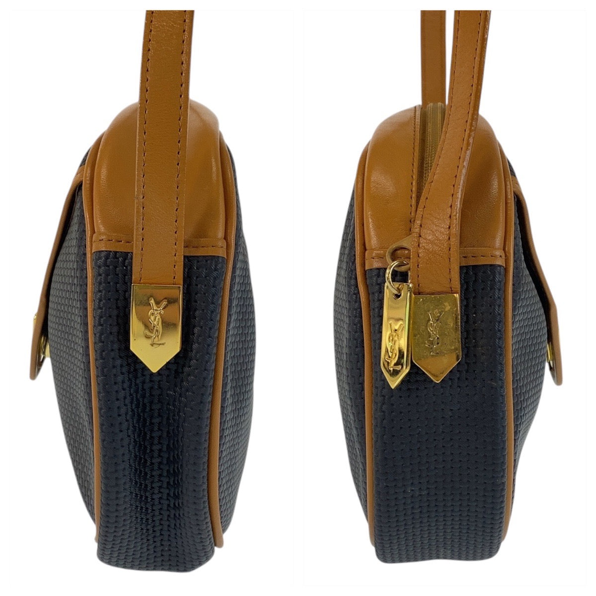 Yves Saint Laurent Shoulder Bag PVC, Leather Black Camel Gold Metal Shoulder Bag pochette YSL Women Used Authentic