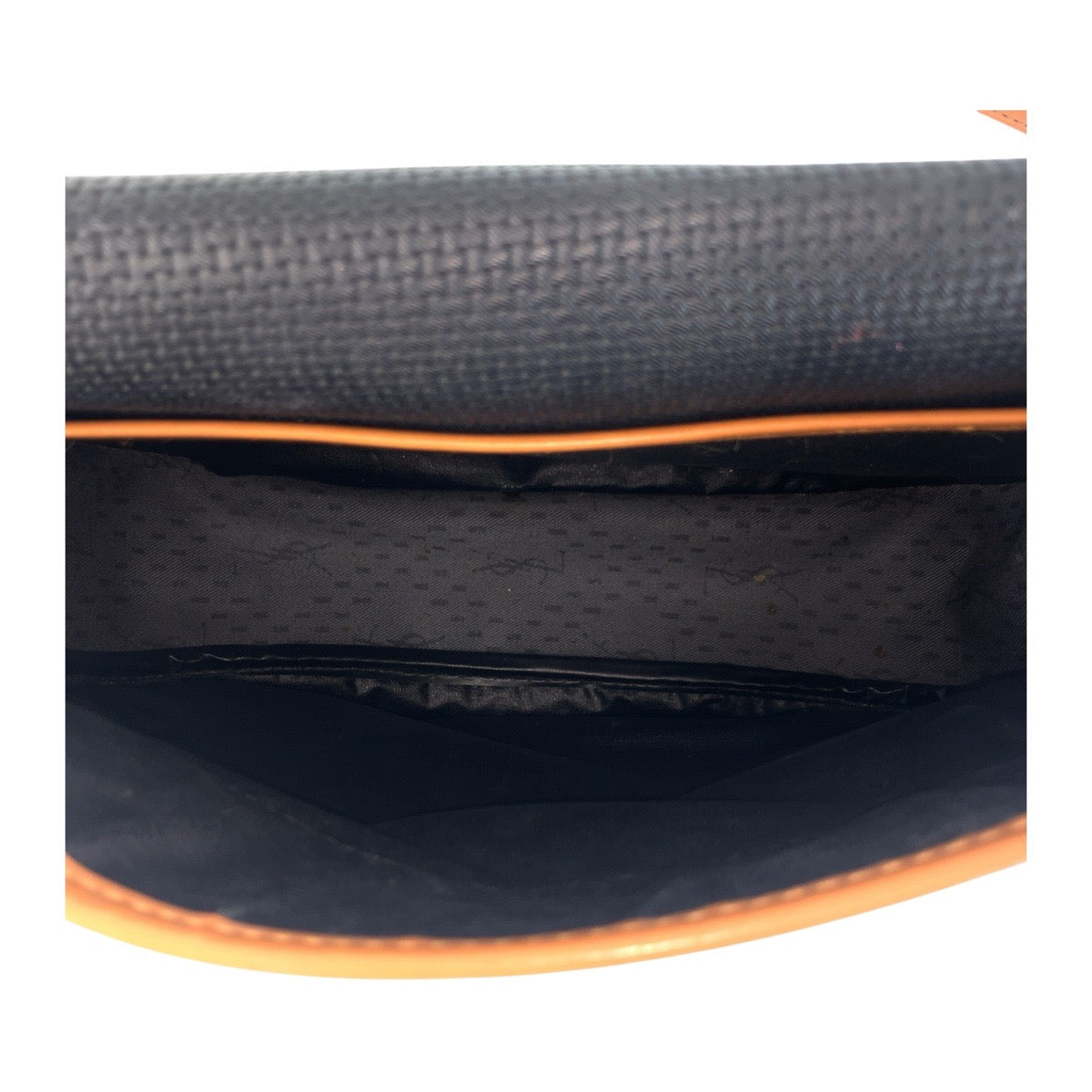 YVES SAINT LAURENT Shoulder Bag PVC, Leather Brown Navy Gold Metal Crossbody Shoulder Bag YSL Women Used Authentic