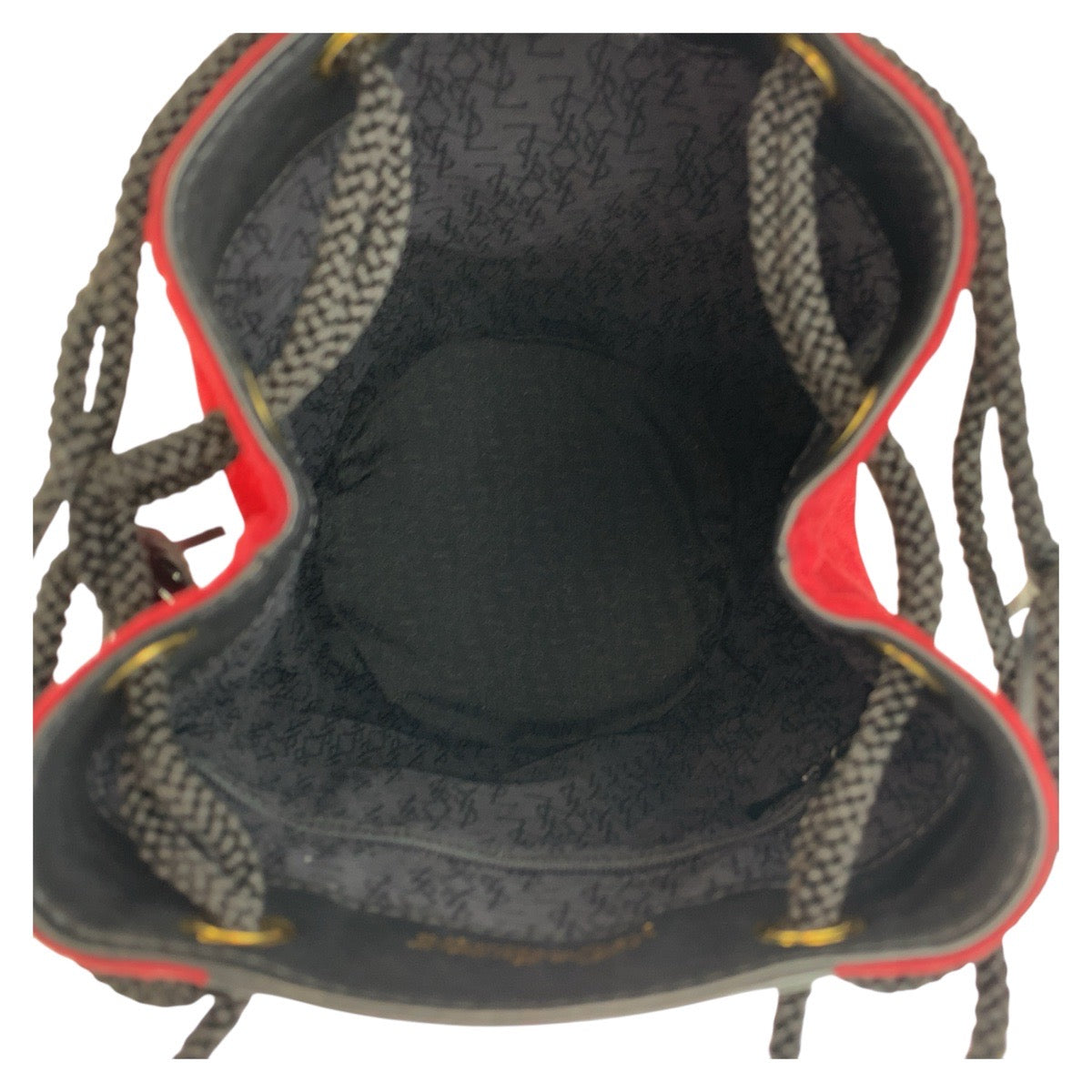 Yves Saint Laurent Shoulder Bag Suede, Leather Red Black Gold Metal Shoulder Bag pochette YSL Women Used Authentic