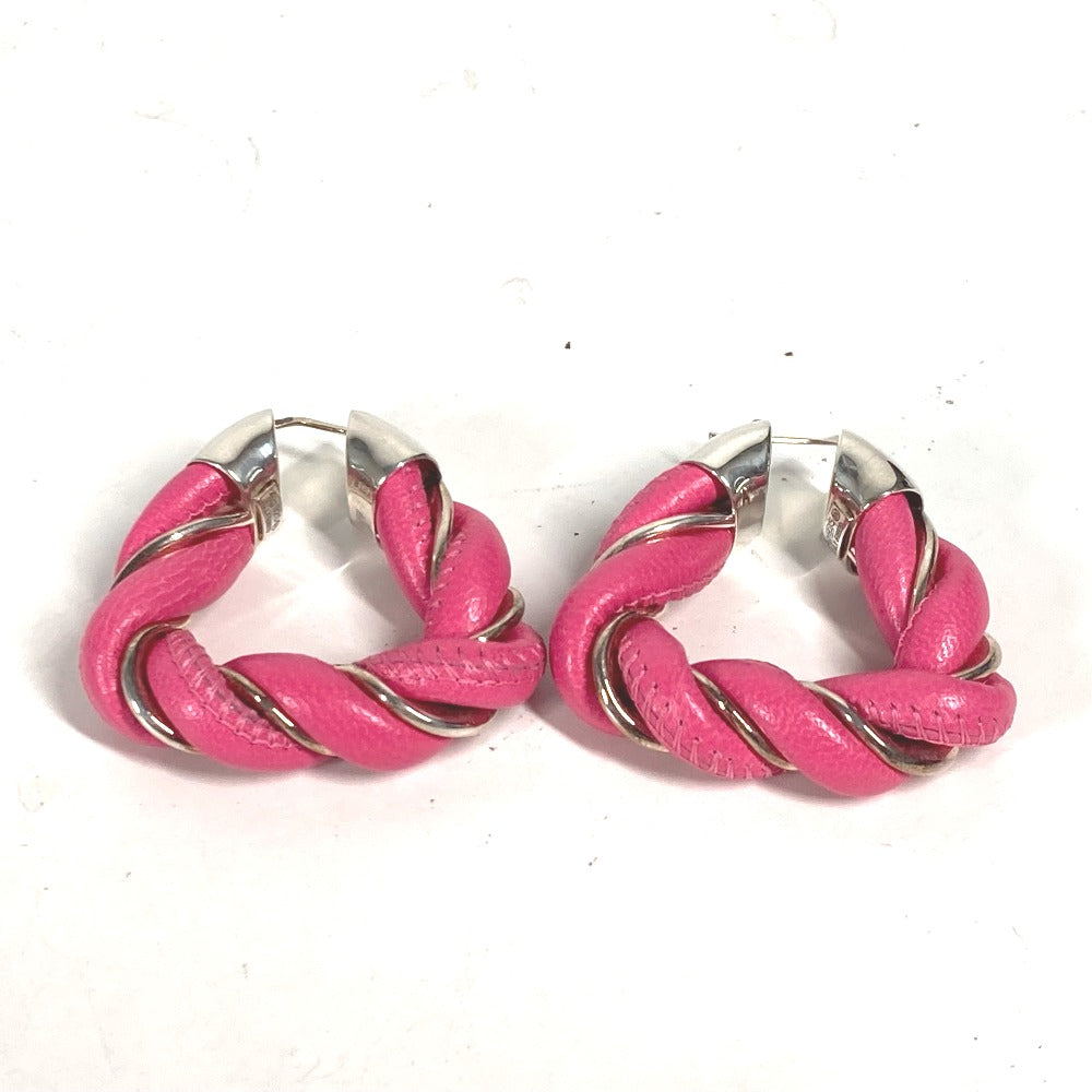 BOTTEGAVENETA Pierce Leather, AG925 Light yellow type Twisted Triangle Hoop Earrings Women Used Authentic