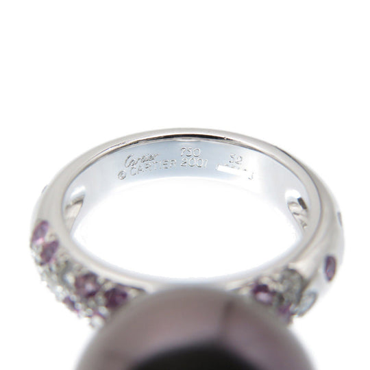 CARTIER Ring Black Pearl (Black Pearl), 18K White Gold black Soap Pretty Ring Black Pearl 0.5" Pink Sapphire/Diamond Women 52 Used Authentic