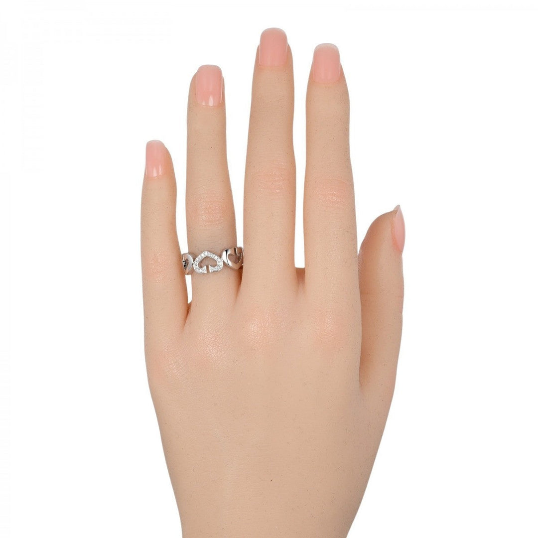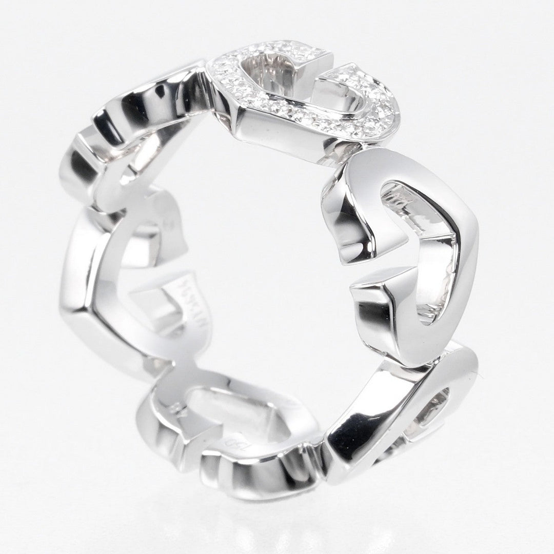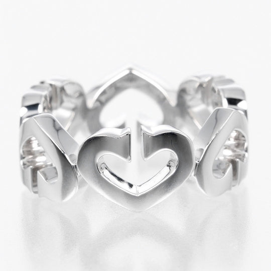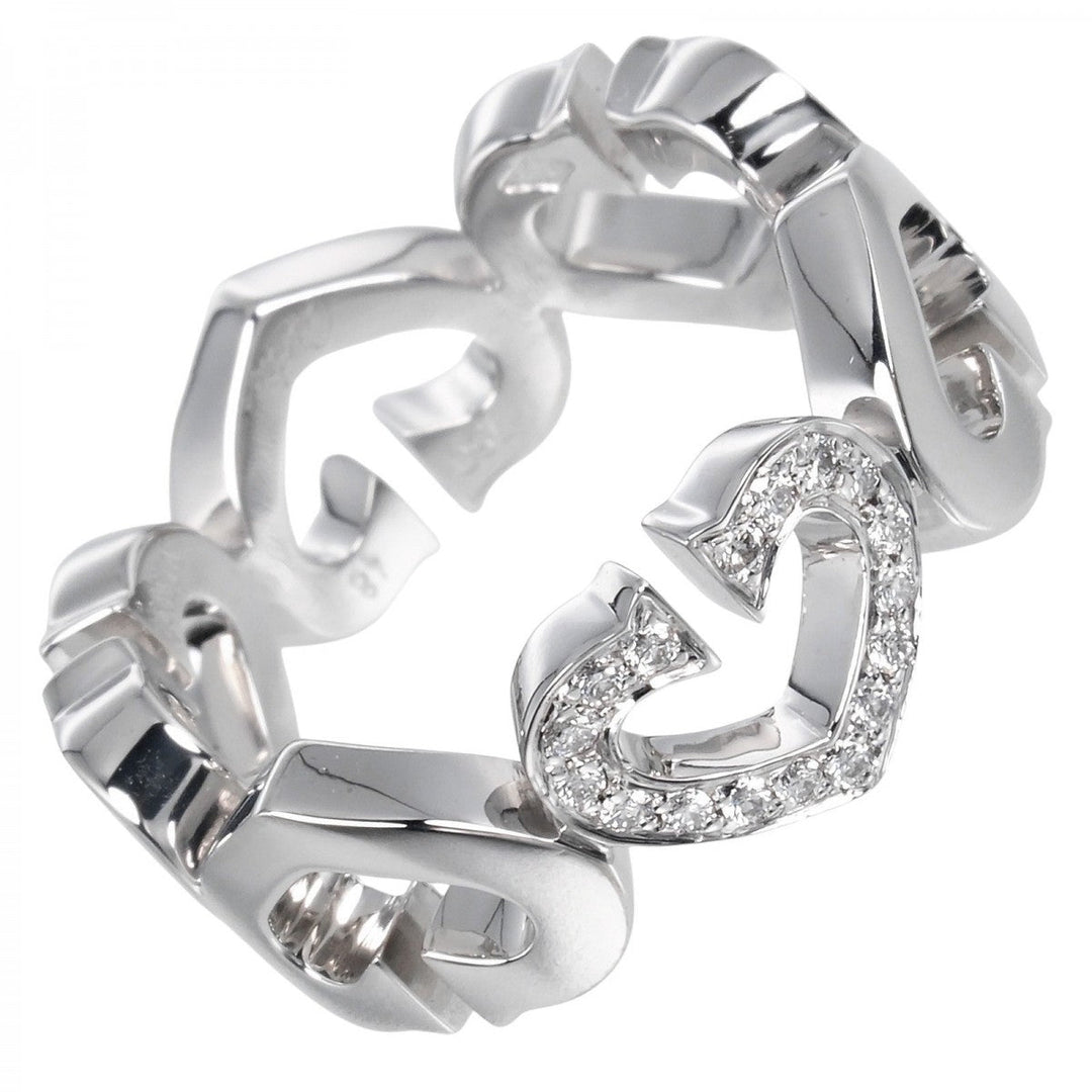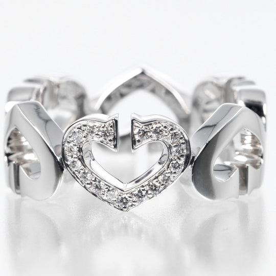 CARTIER Ring K18 White Gold, Diamond Silver C heart Women 48 Used Authentic