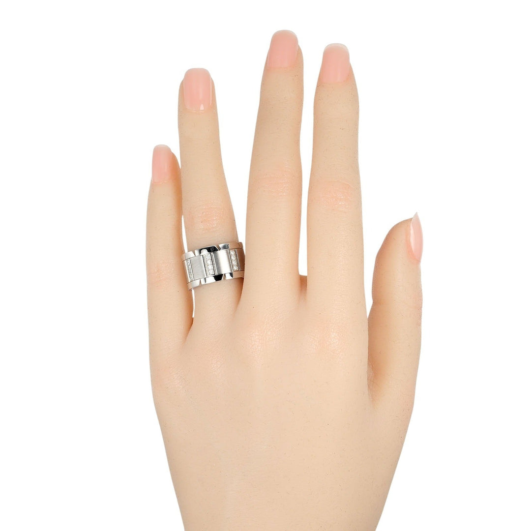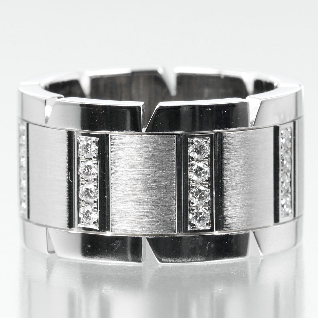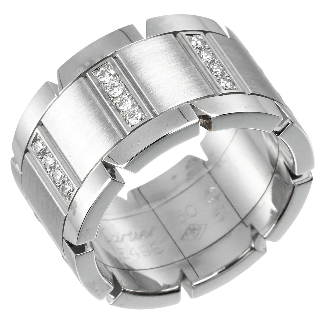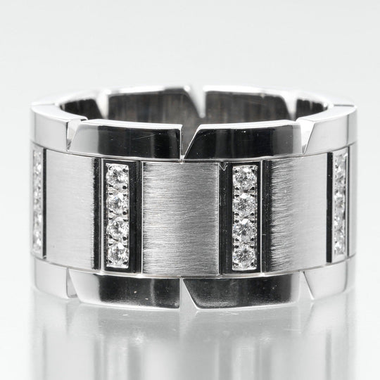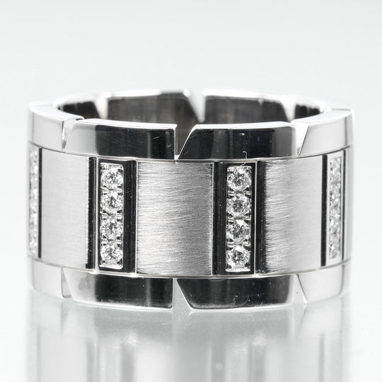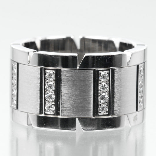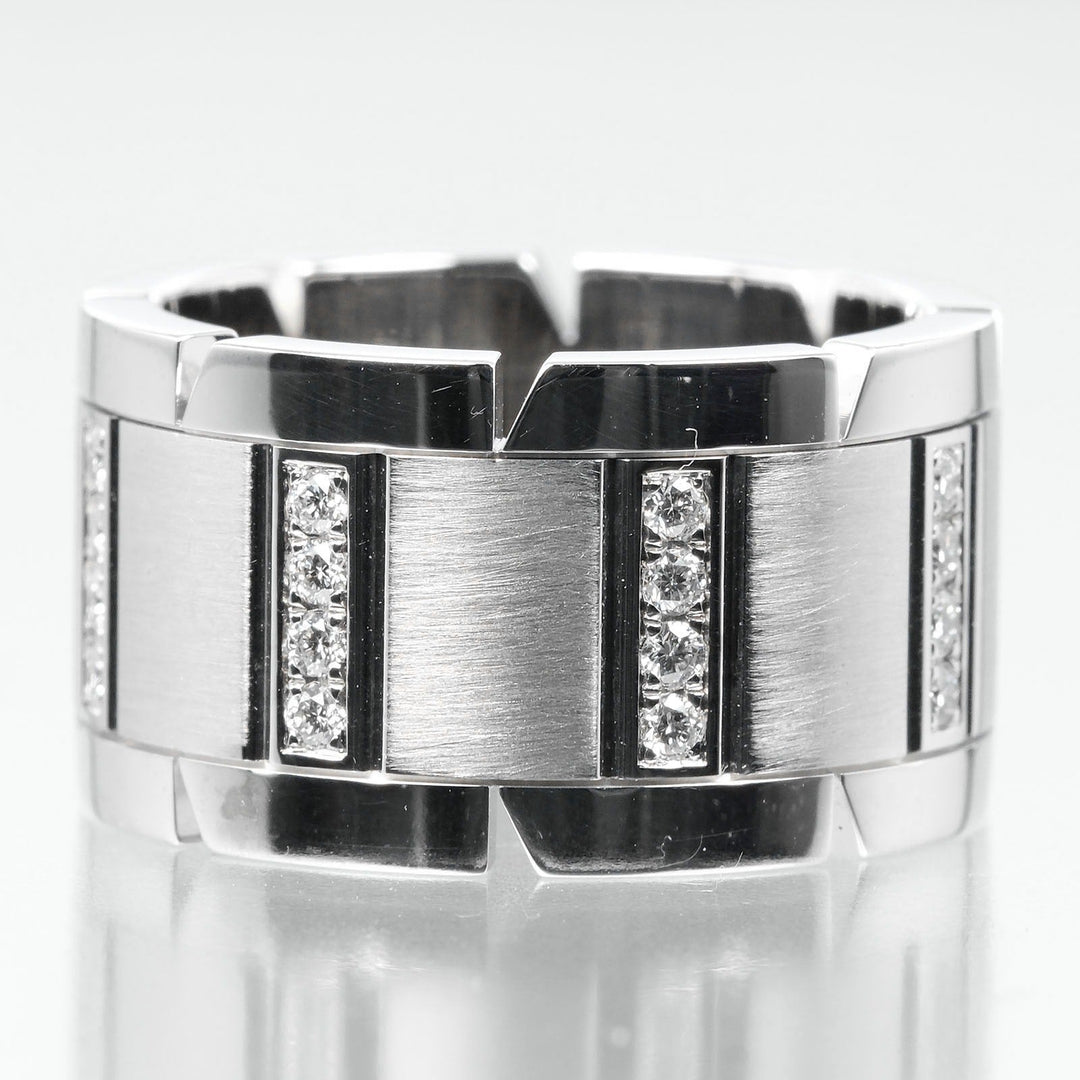 CARTIER Ring K18 White Gold, Diamond Silver Tank Franaise Women 51 Used Authentic