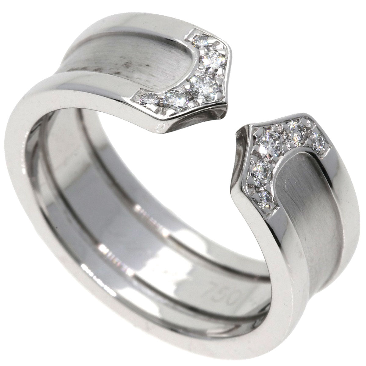 CARTIER Ring K18WG Silver C2 Ring Black Lacquer #51 Women Used Authentic