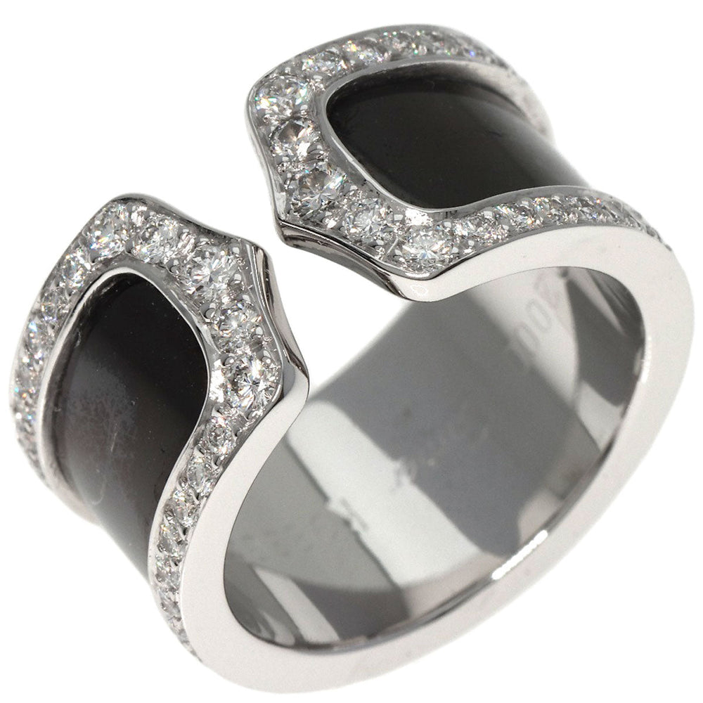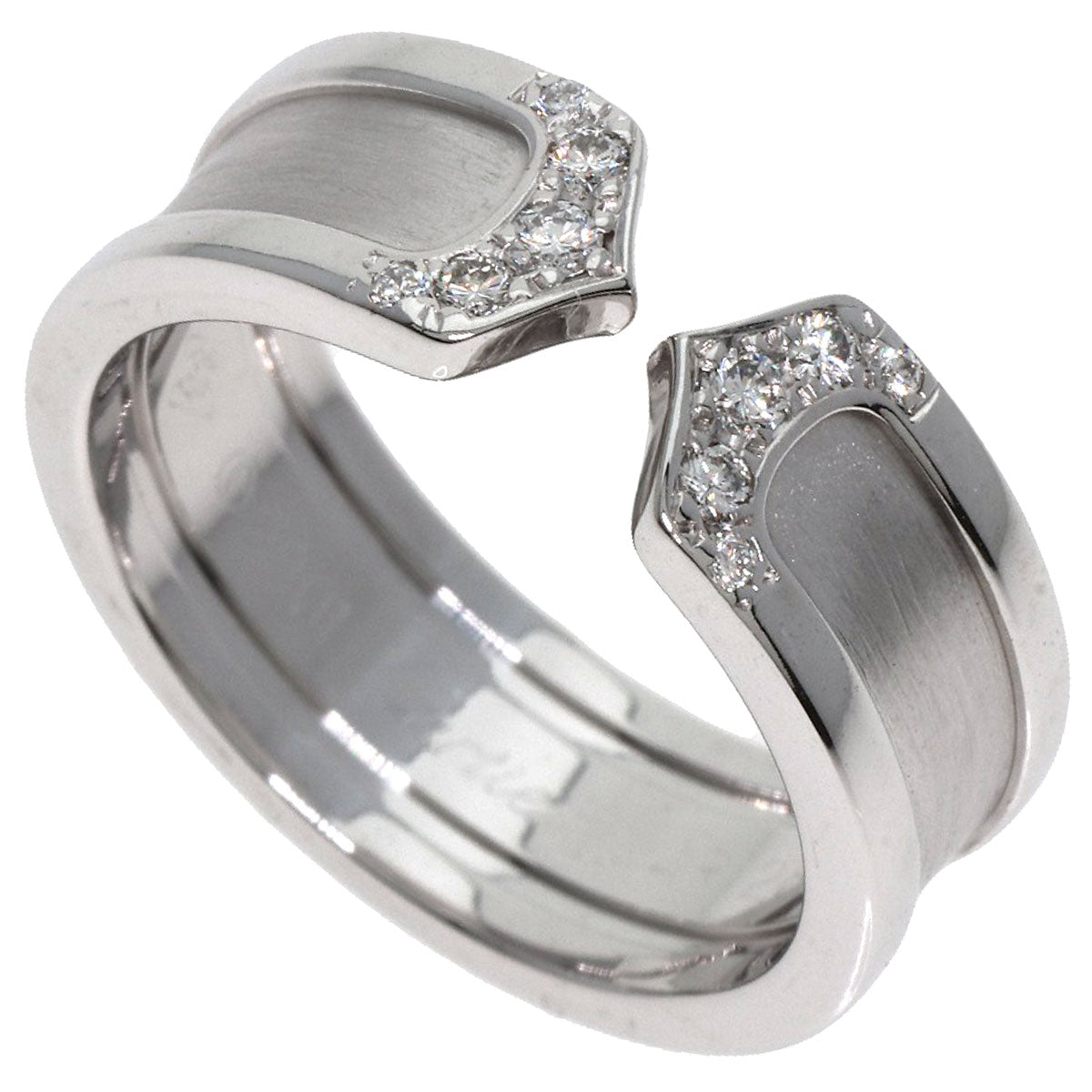 CARTIER Ring K18WG Silver C2 Ring LM Edge Diamond Lacquer #50 Manufacturer Complete Women Used Authentic
