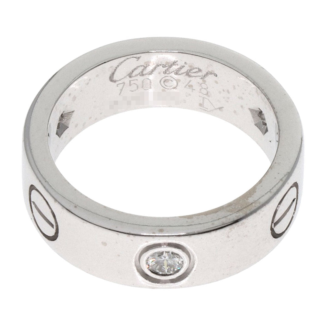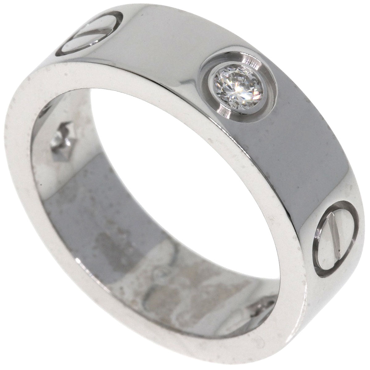 CARTIER Ring K18WG Silver Love Ring 3P Diamond #48 Women Used Authentic