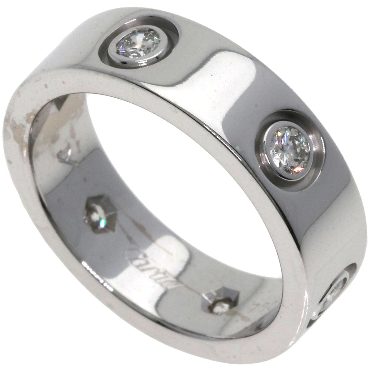 CARTIER Ring K18WG Silver Love Ring Full Diamond #46 Women Used Authentic